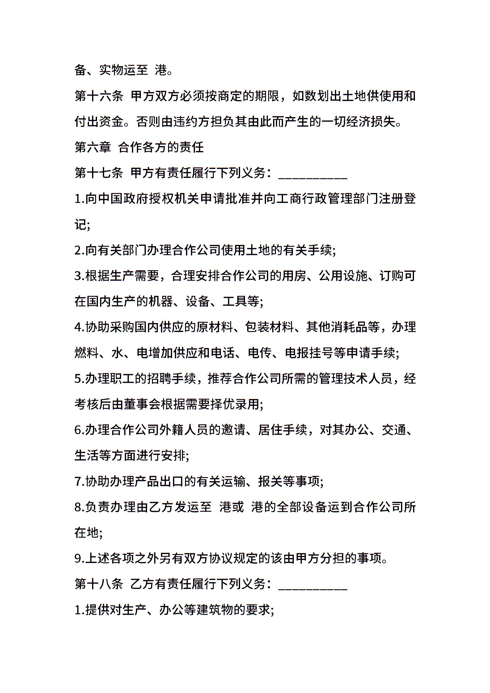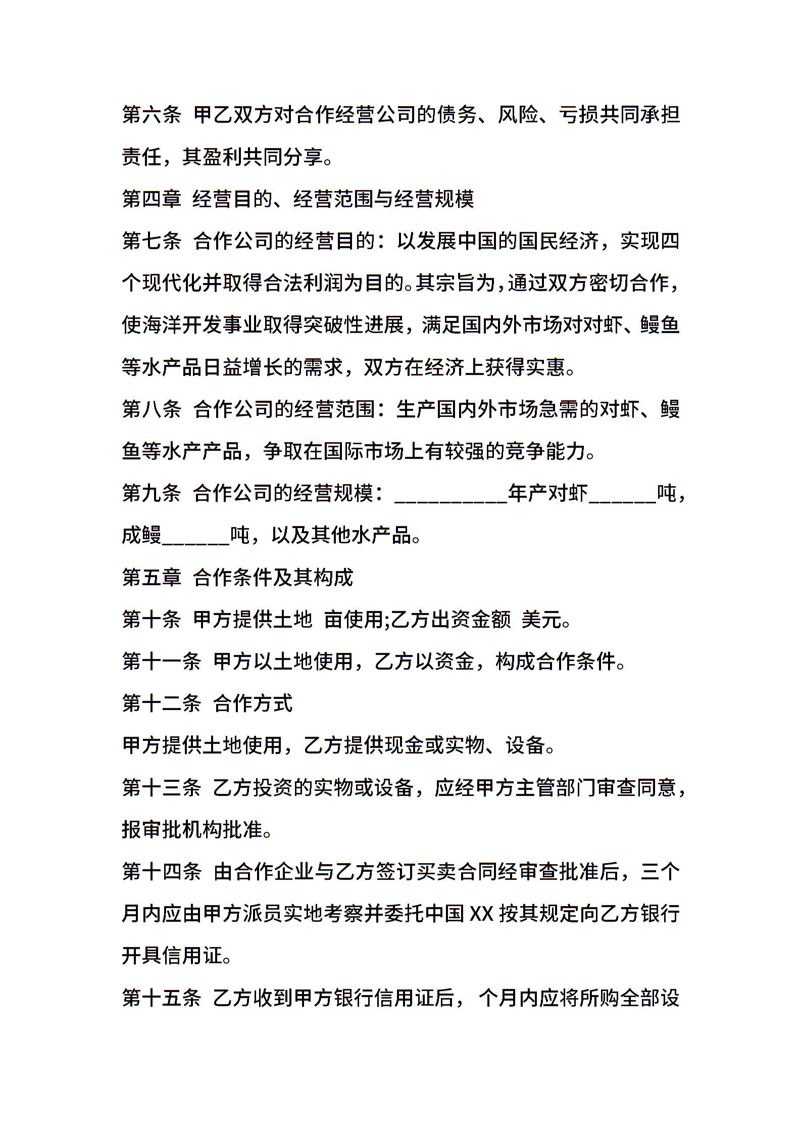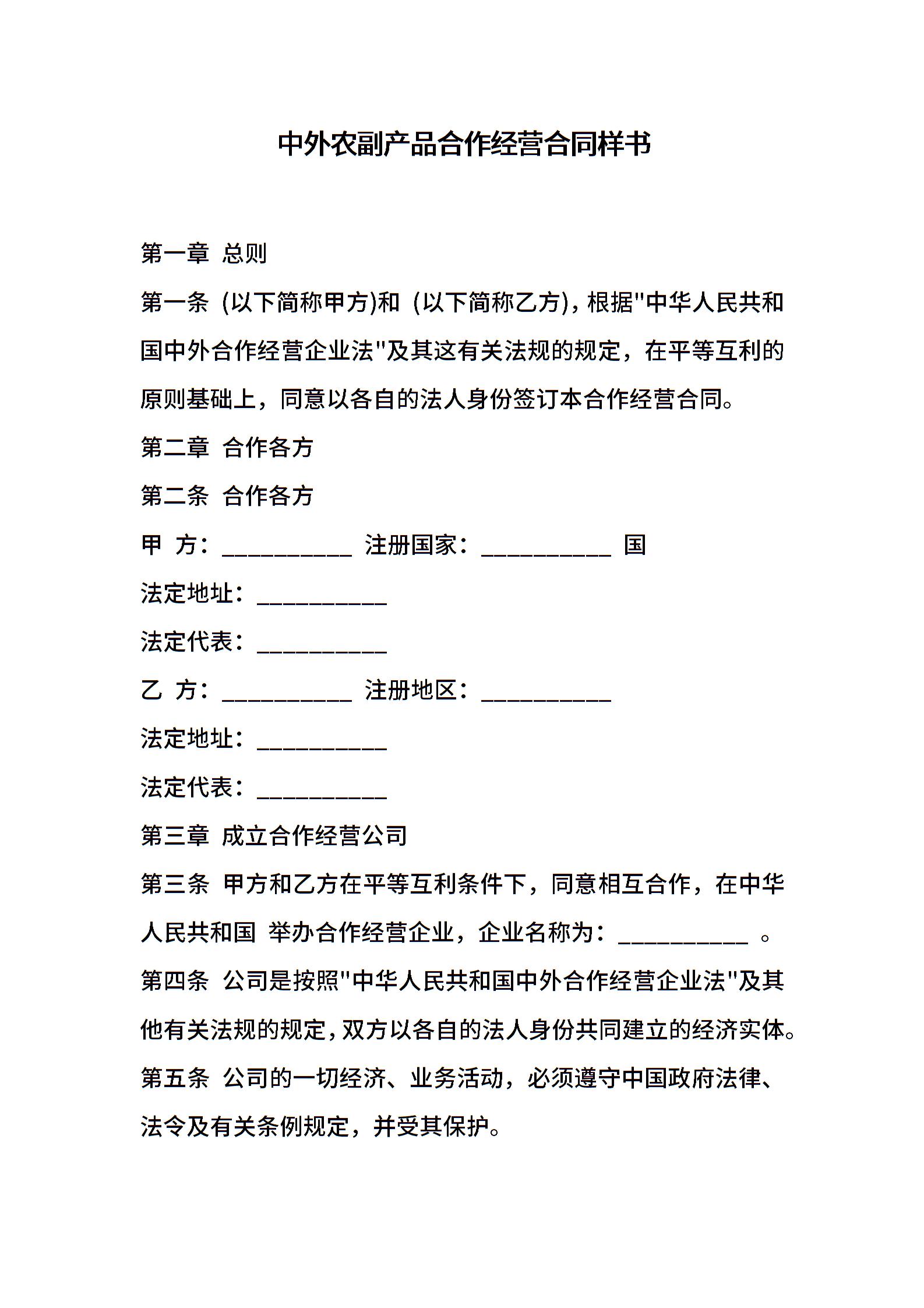 中外农副产品合作经营合同样书