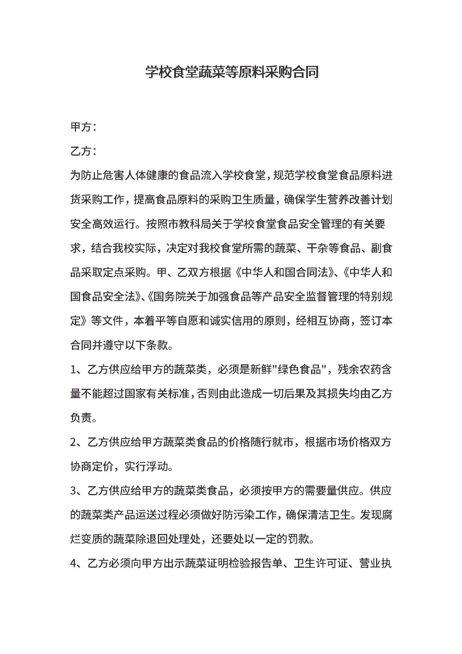 食堂采购蔬菜协议书