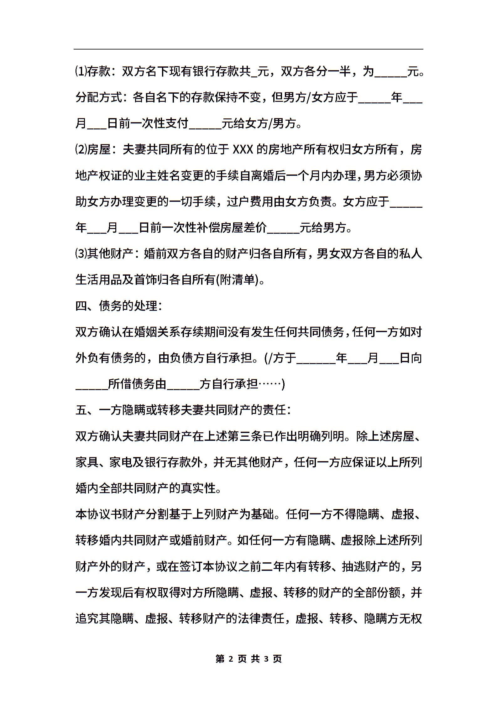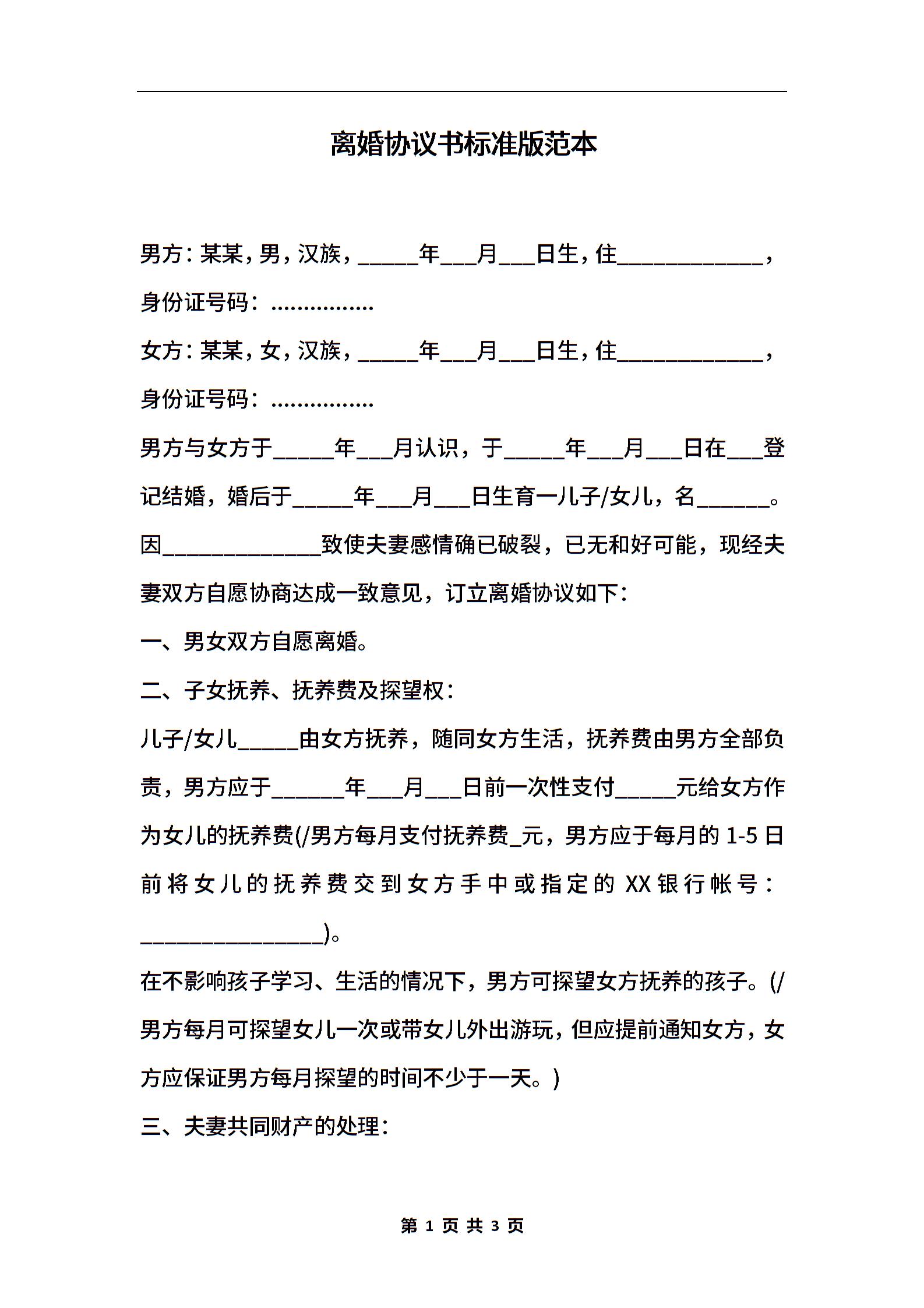离婚协议书标准版范本