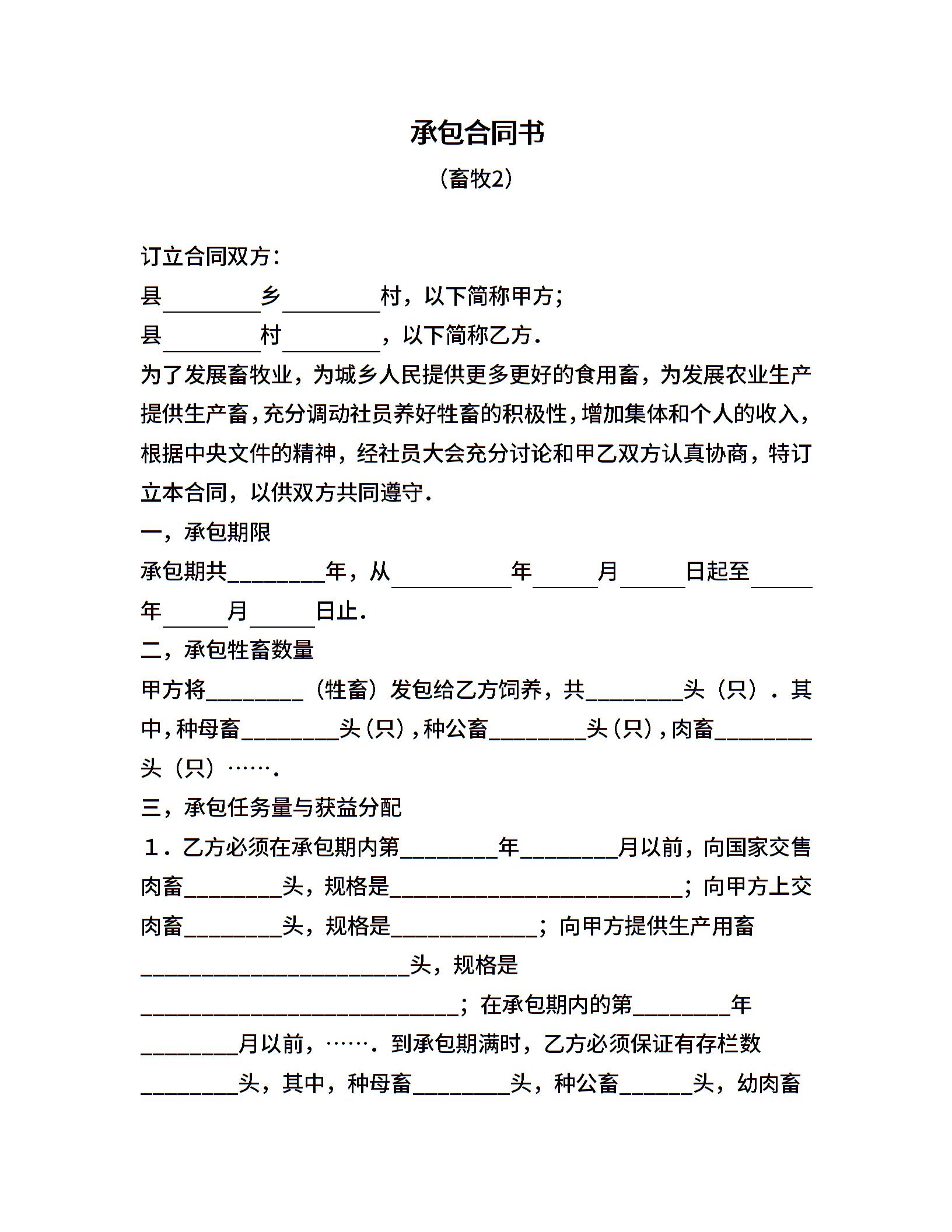承包合同书(畜牧2)