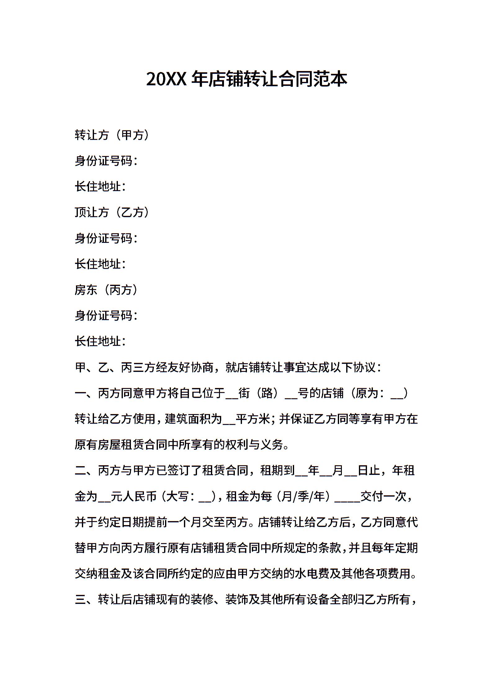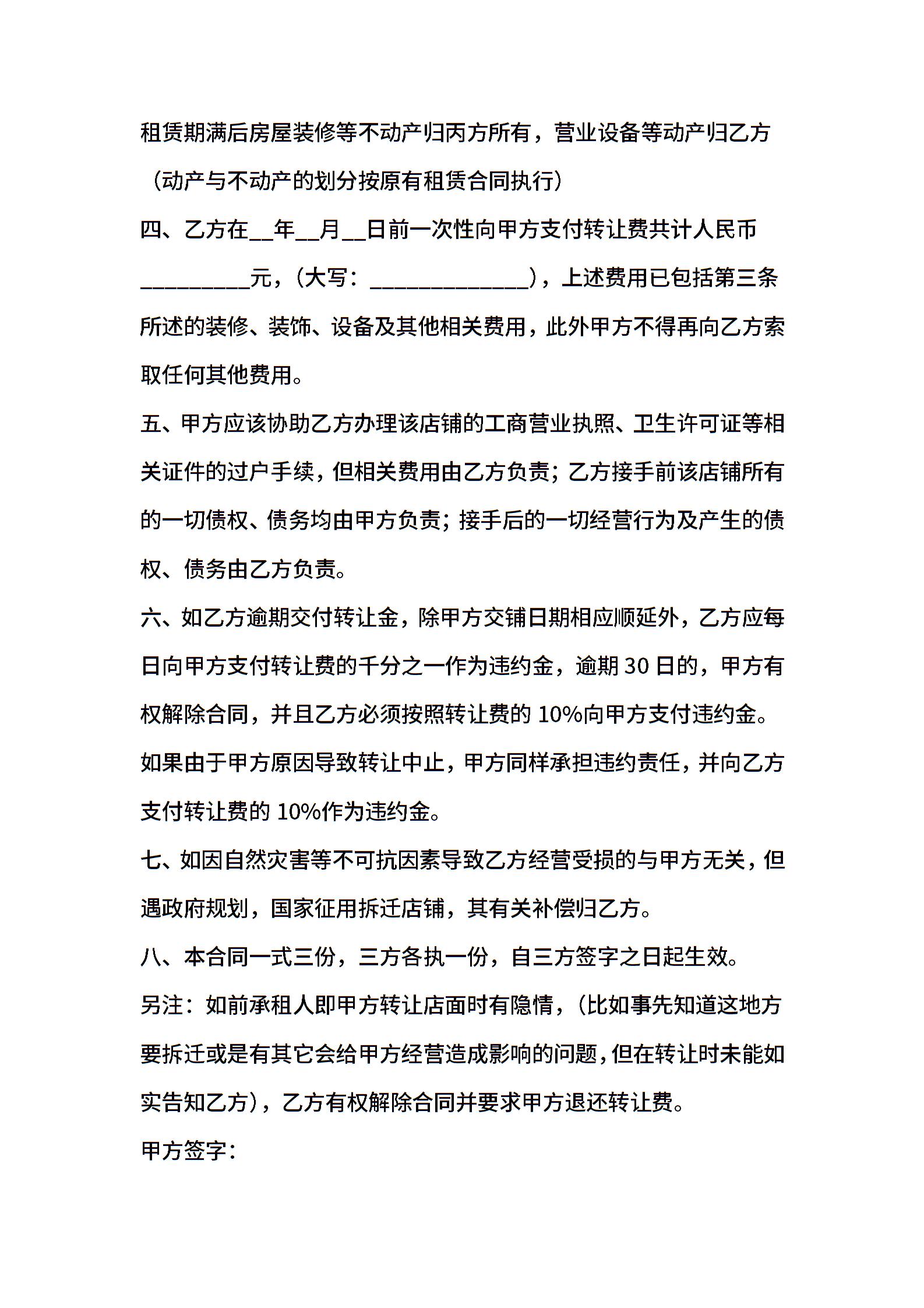 2021年店铺转让合同范本