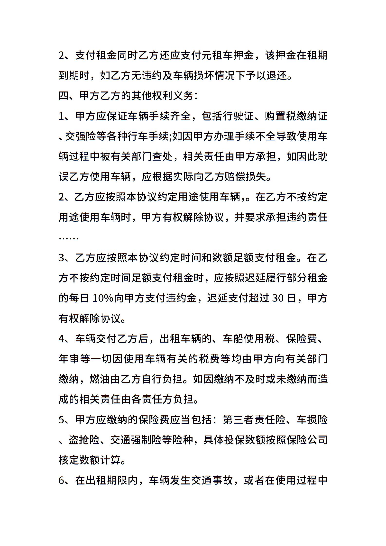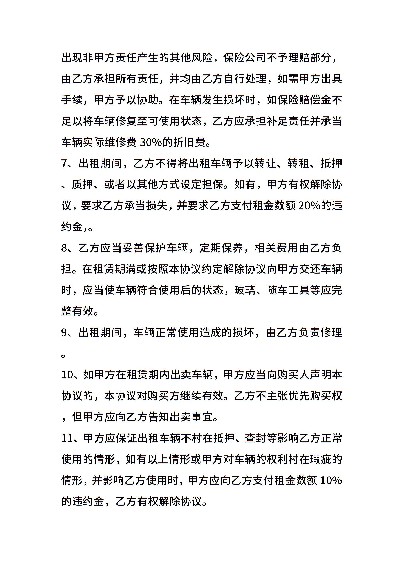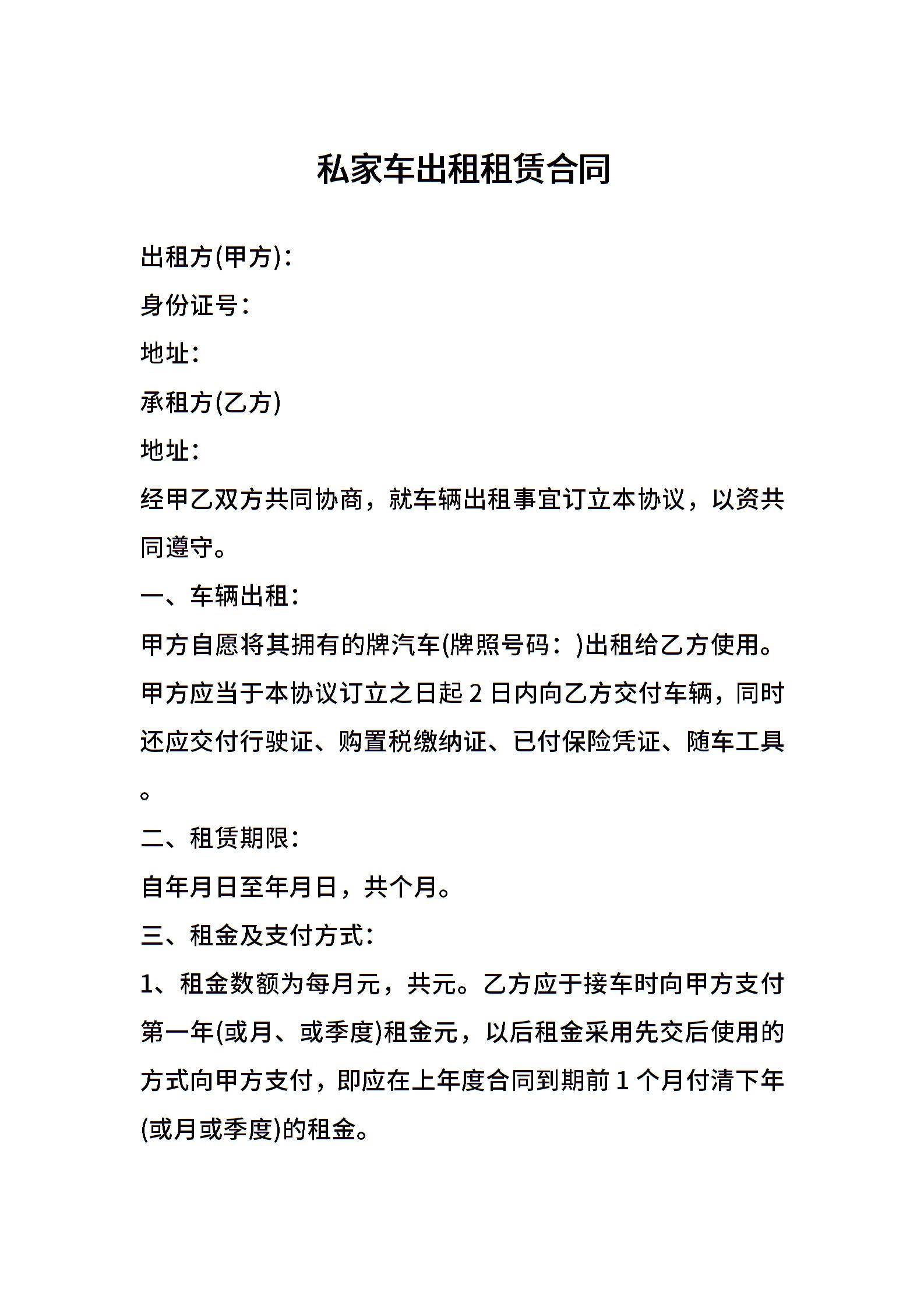 私家车出租租赁合同