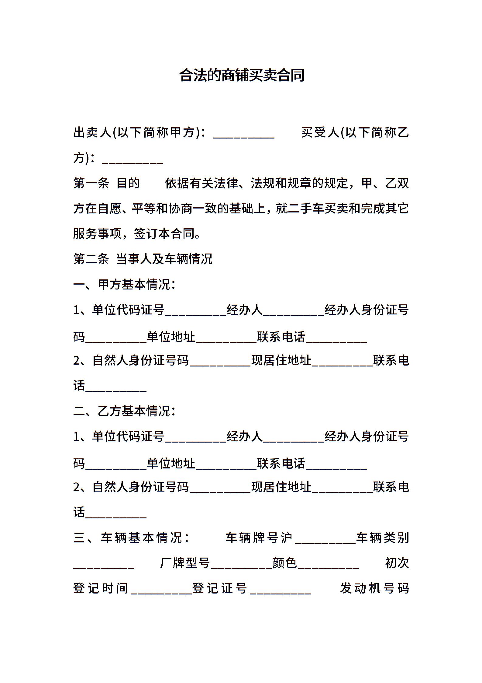 合法的商铺买卖合同