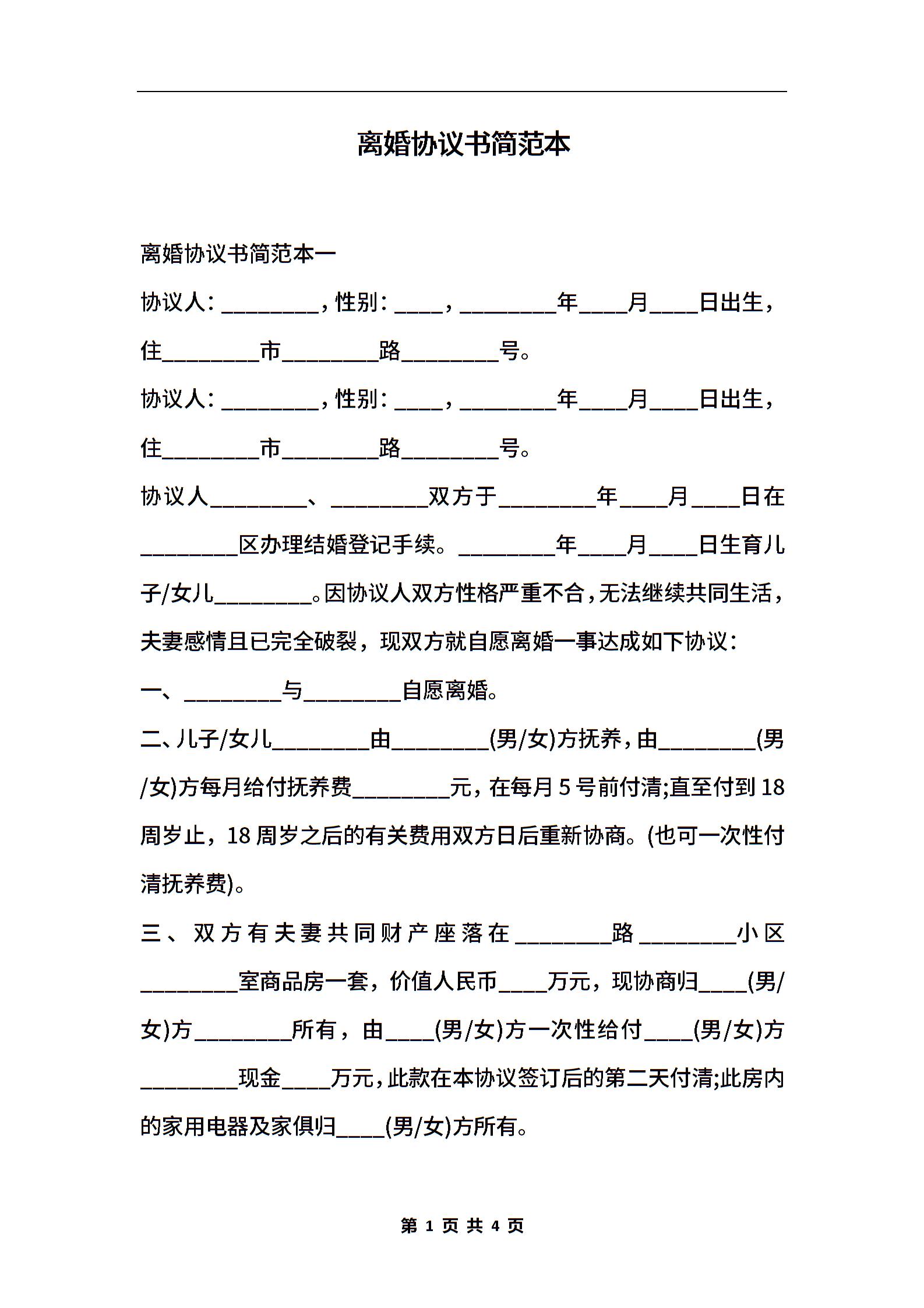 当前位置:量子办公 > 合同模板 > 离婚协议 >