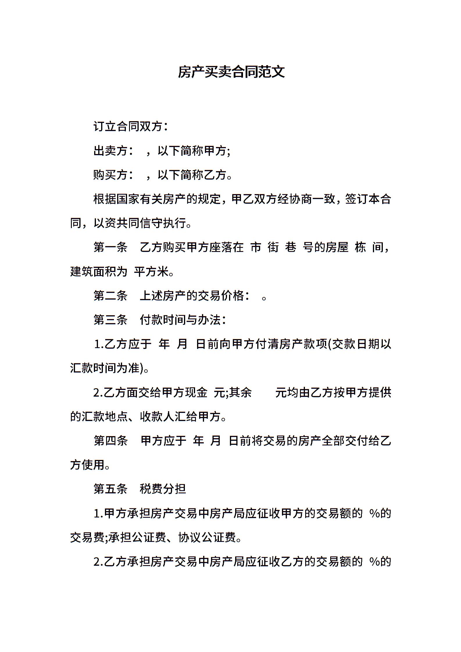 房产买卖合同范文