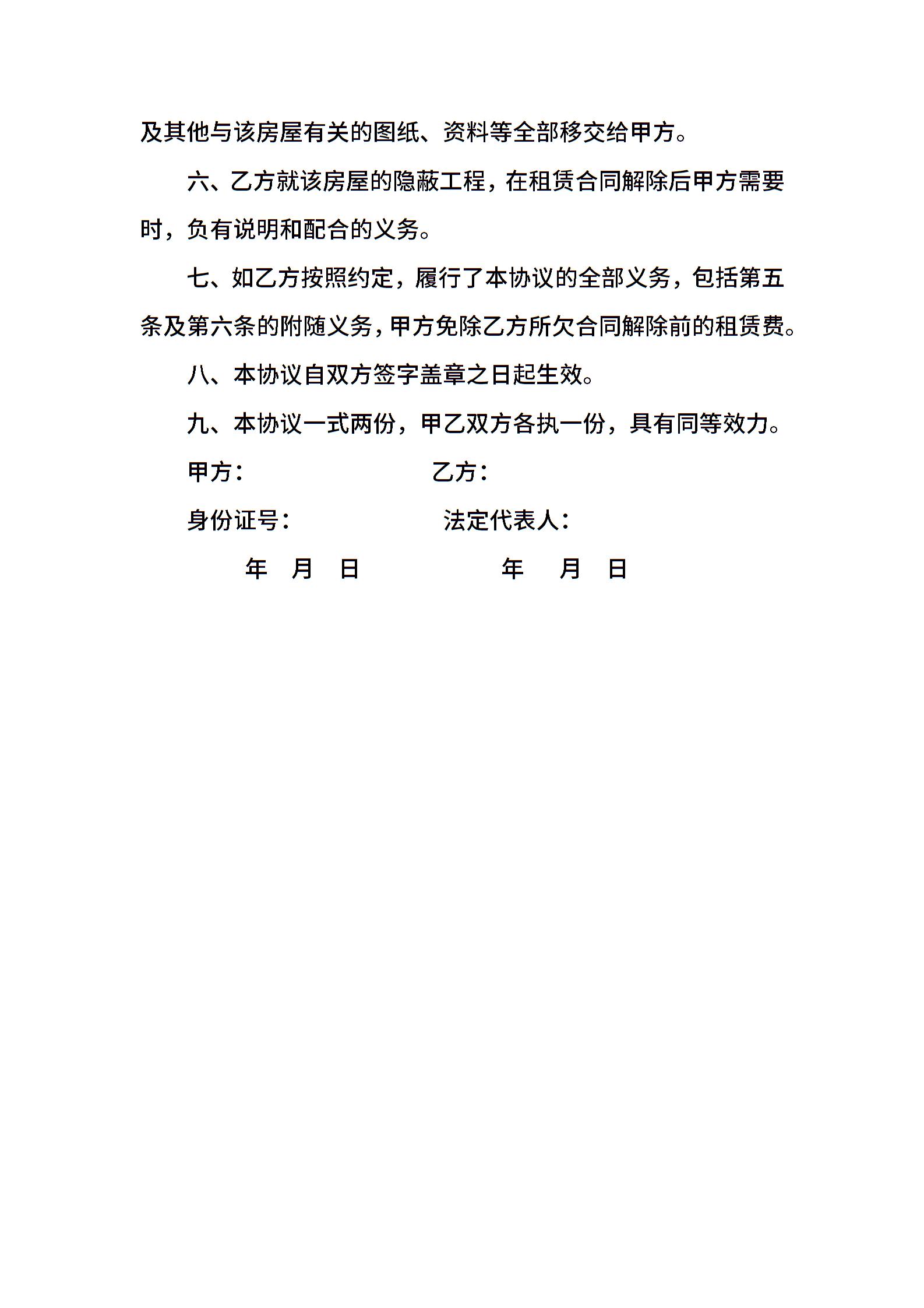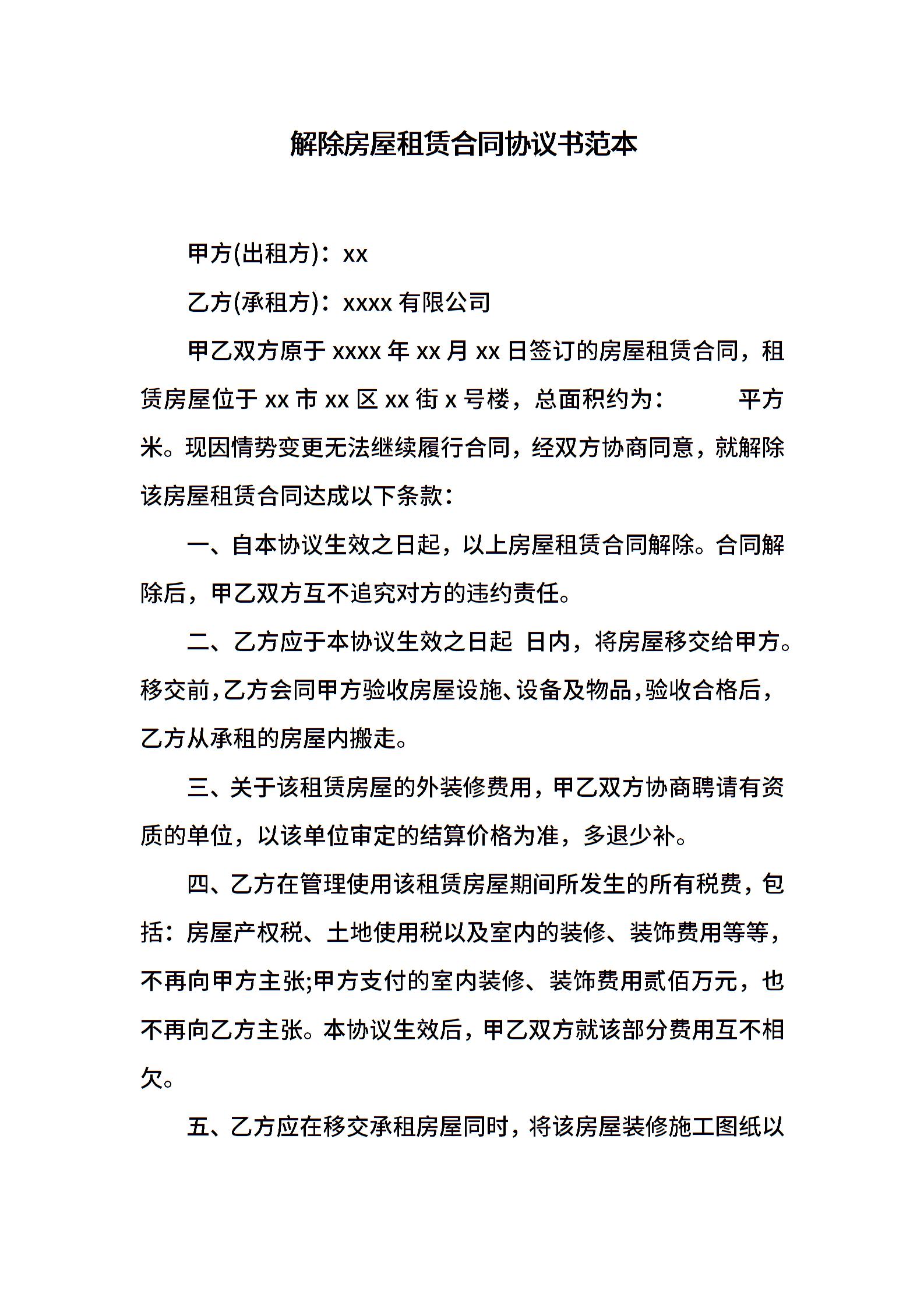 解除房屋租赁合同协议书范本