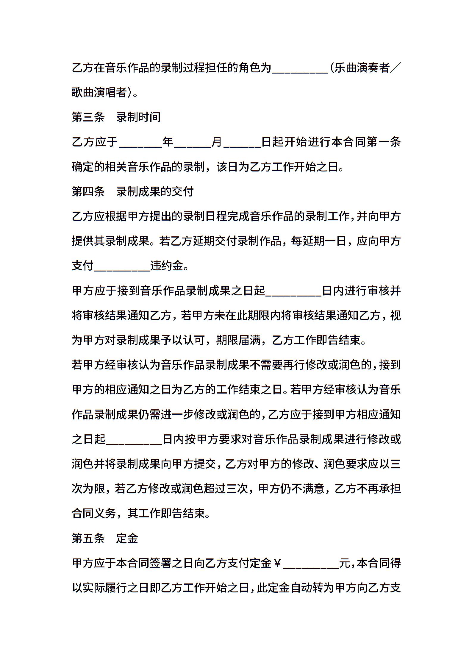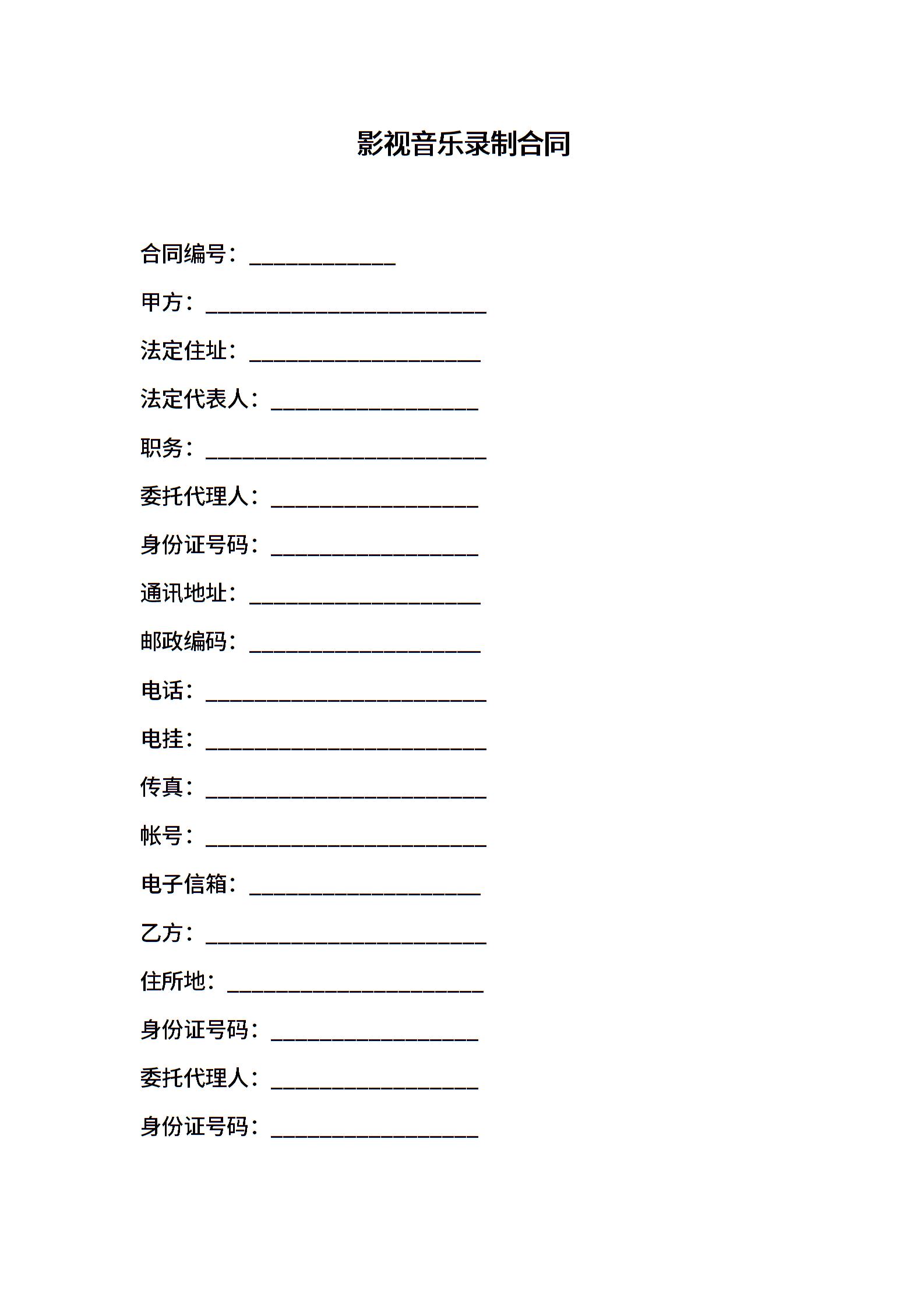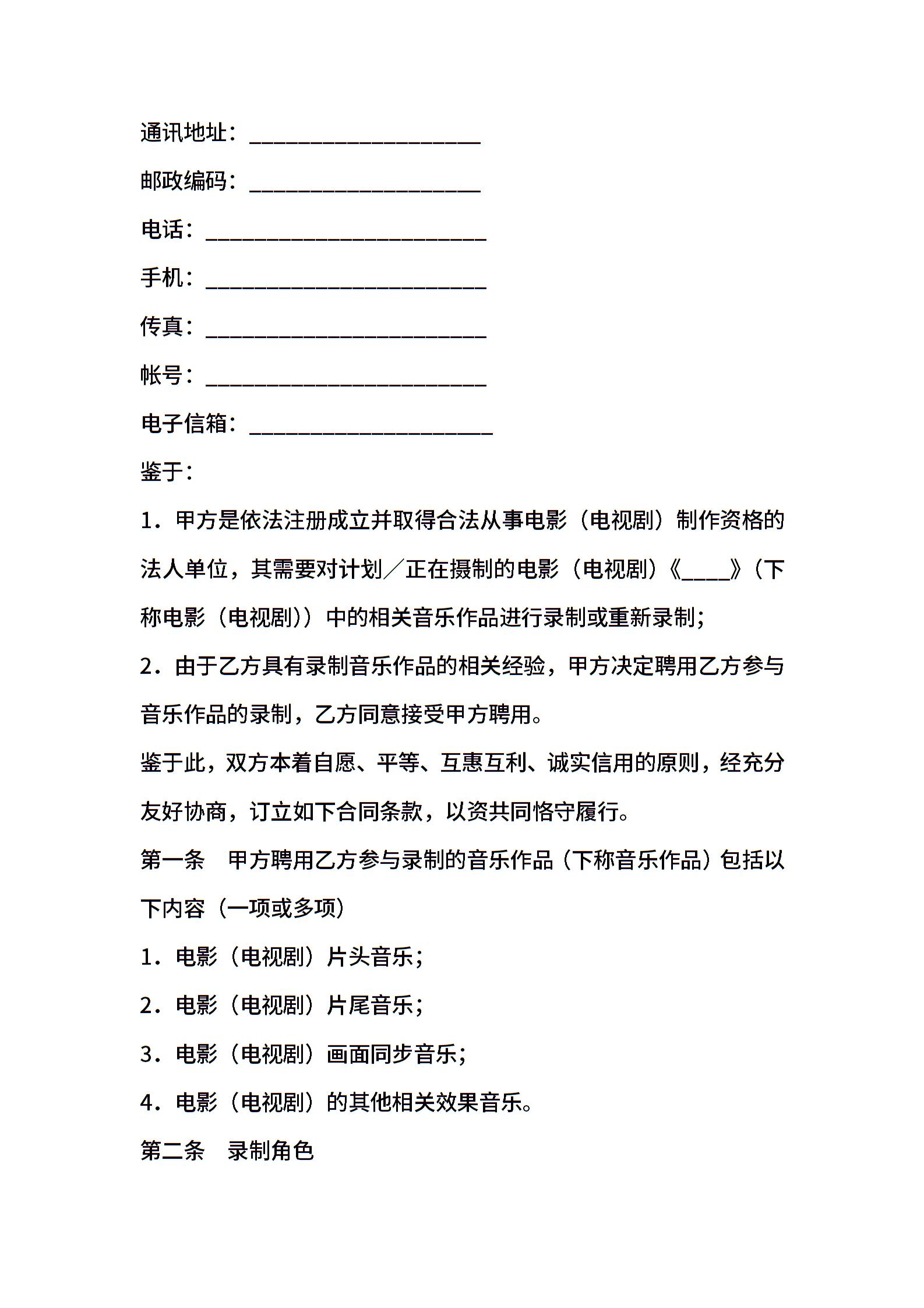 知识产权合同模板:影视音乐录制合同