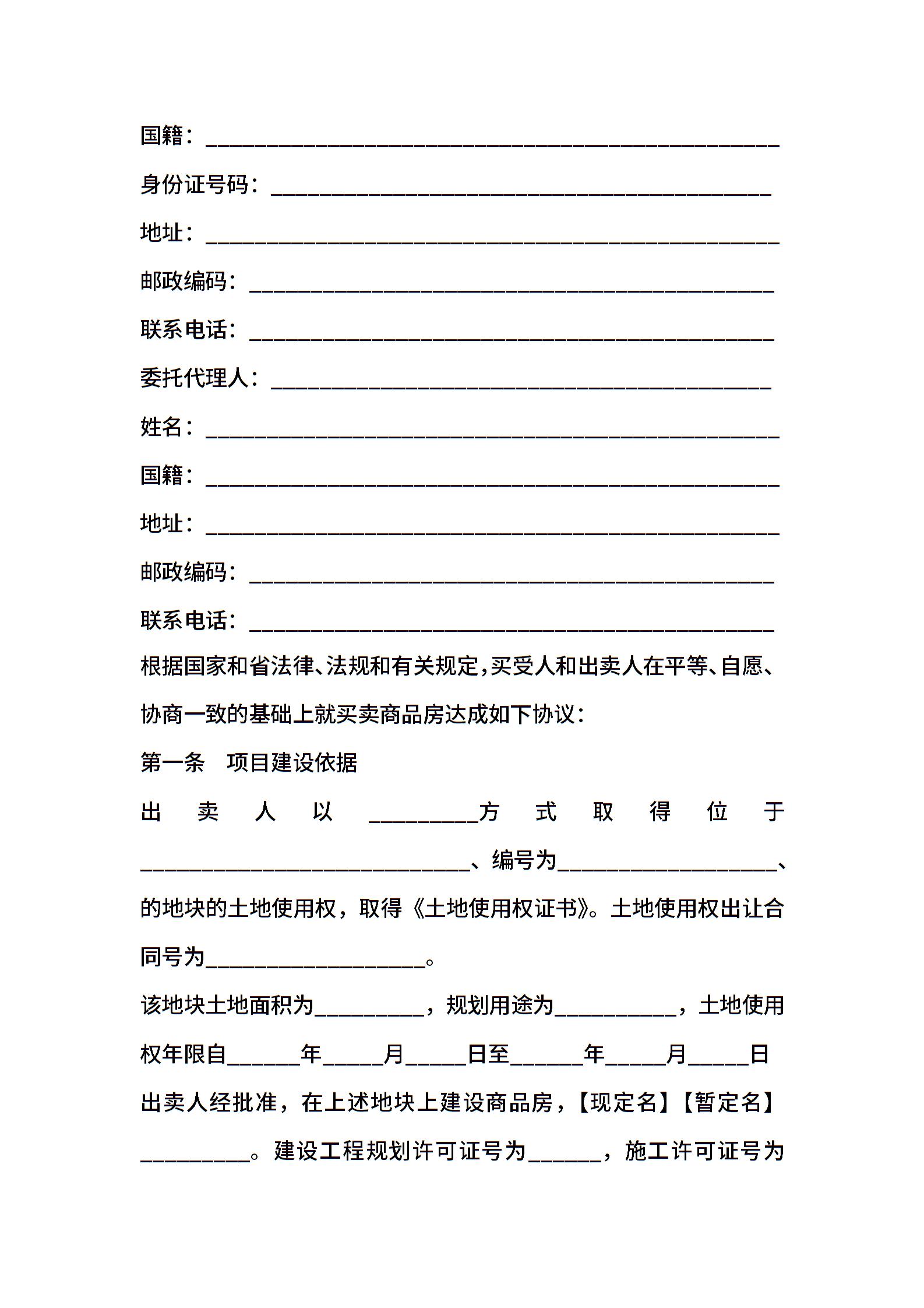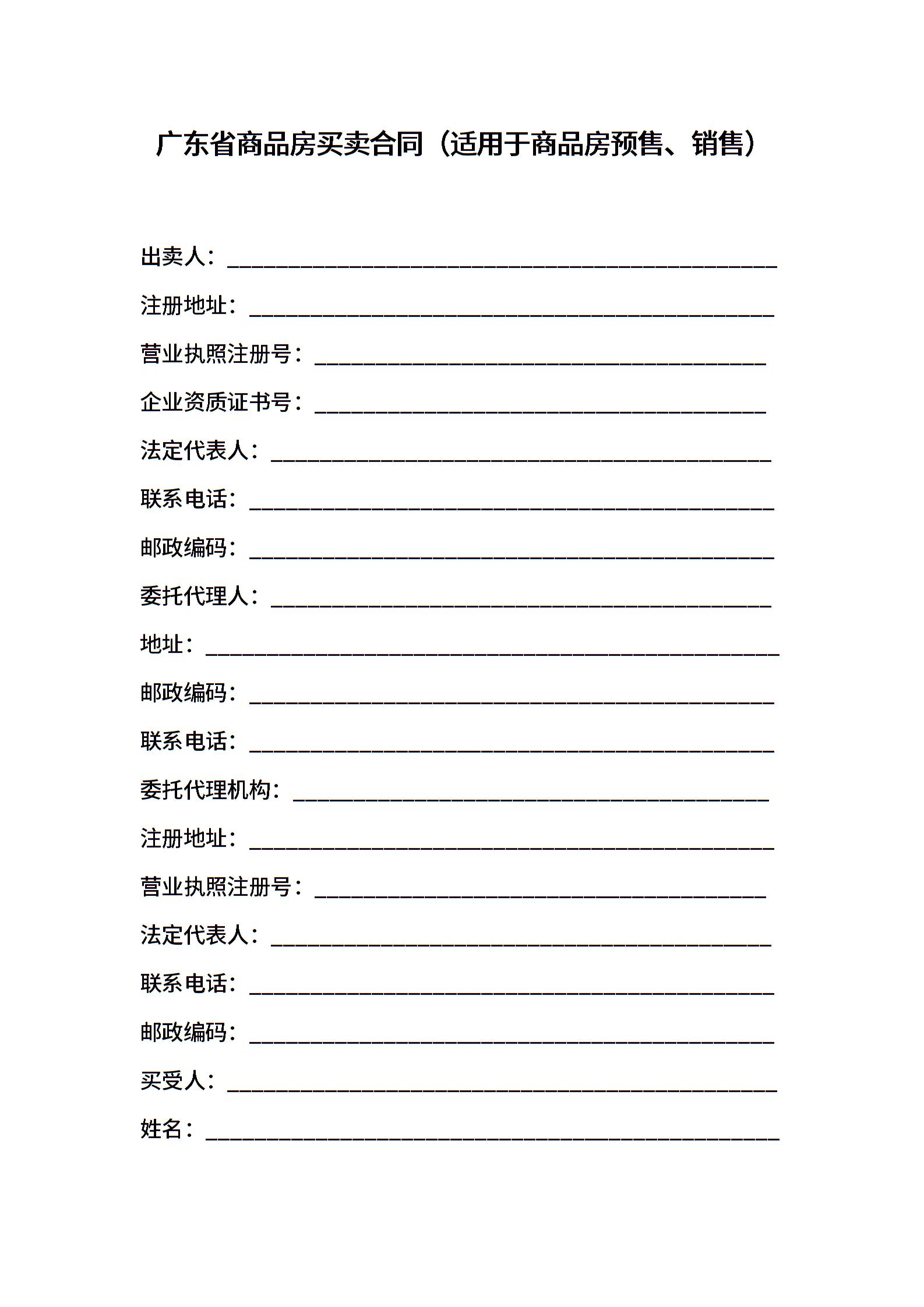 广东省商品房买卖合同(适用于商品房预售、销售)