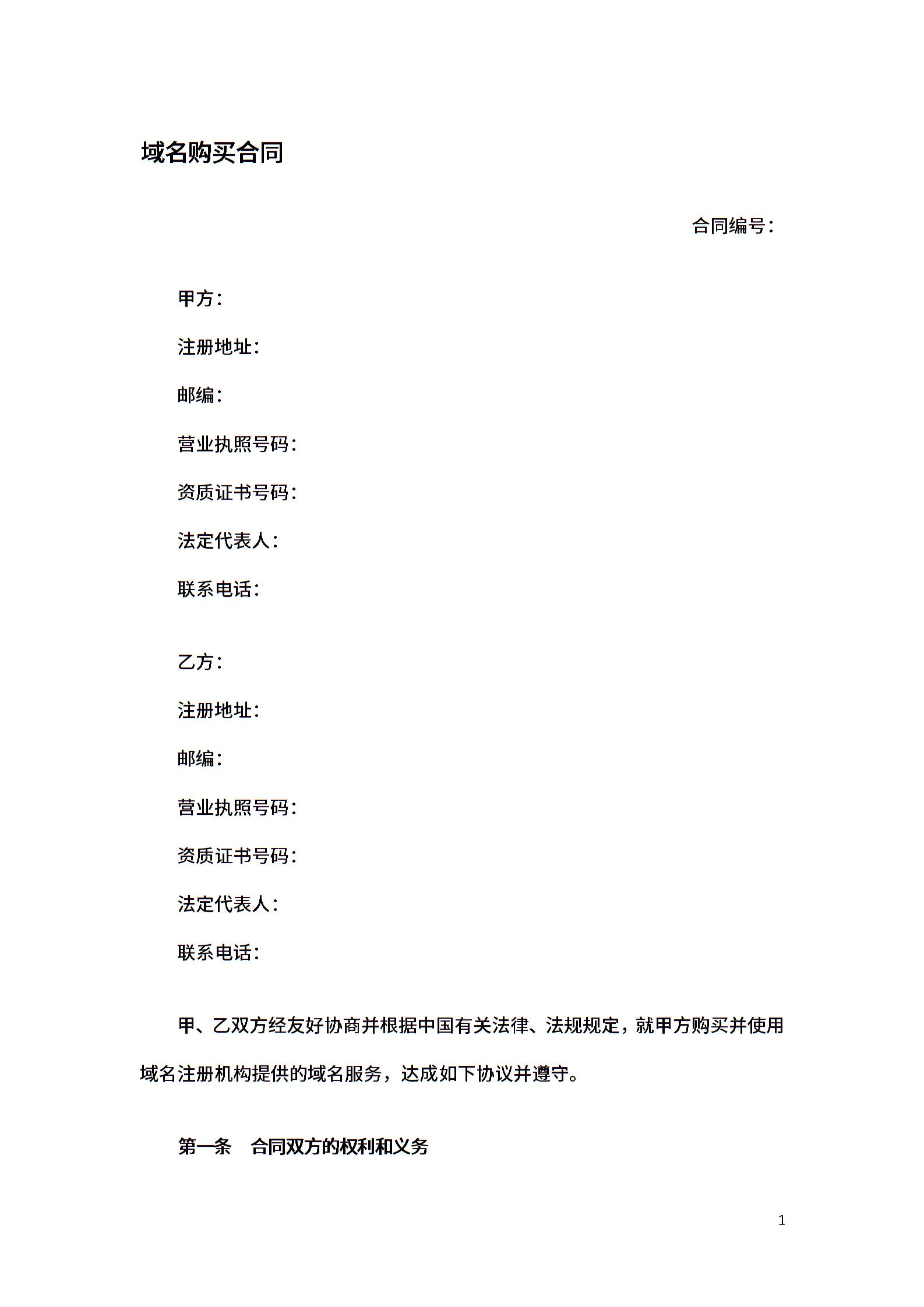 域名购买合同
