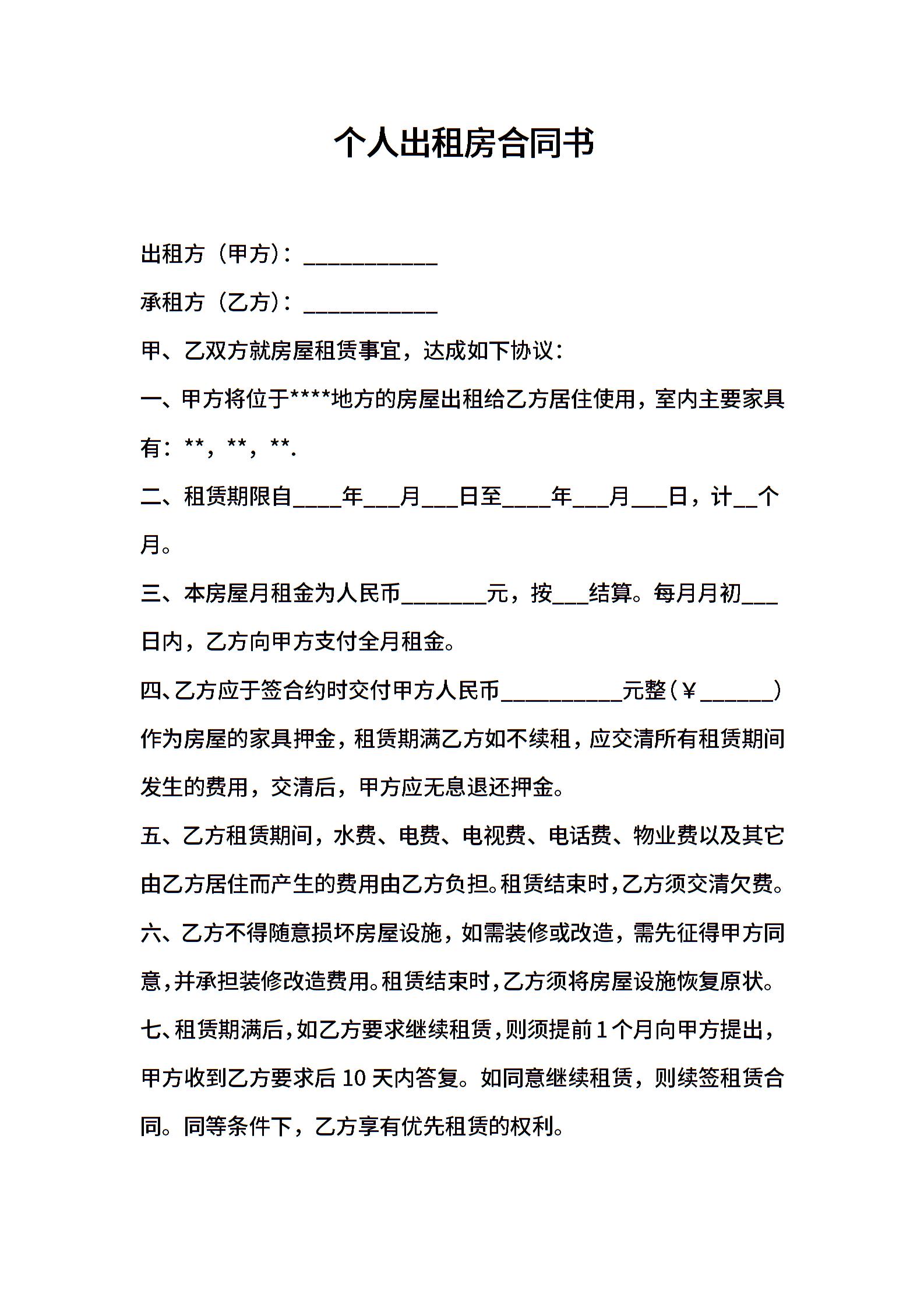 个人出租房合同书