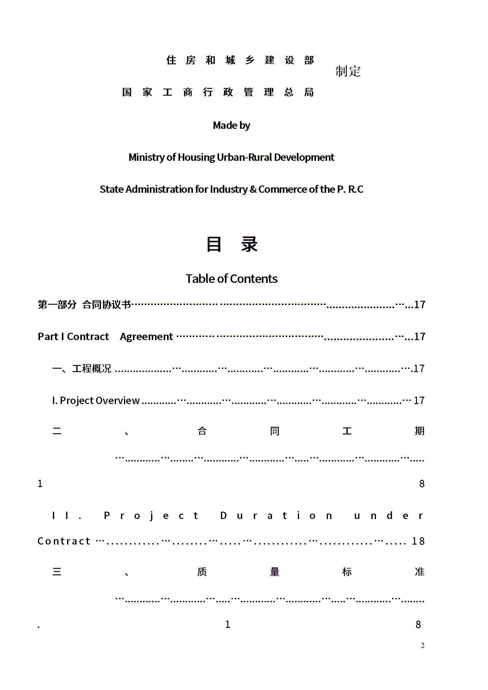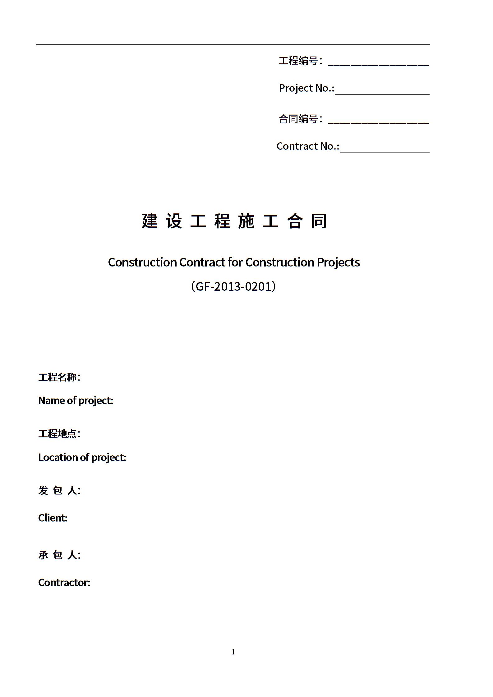 建设工程施工合同(GF-2013-0201)中英文翻译件范本模板