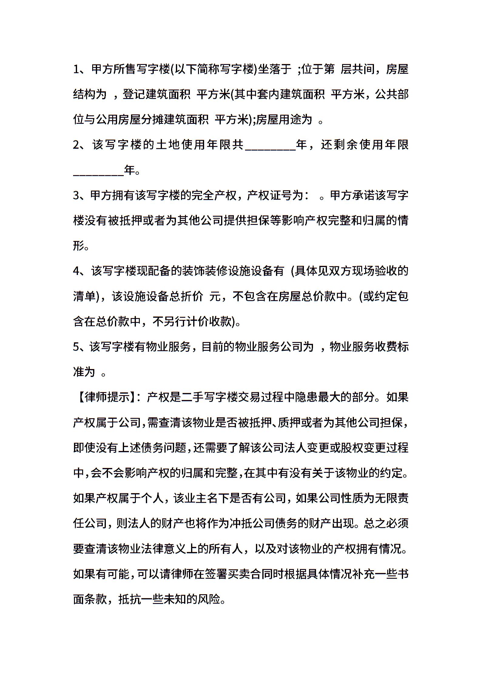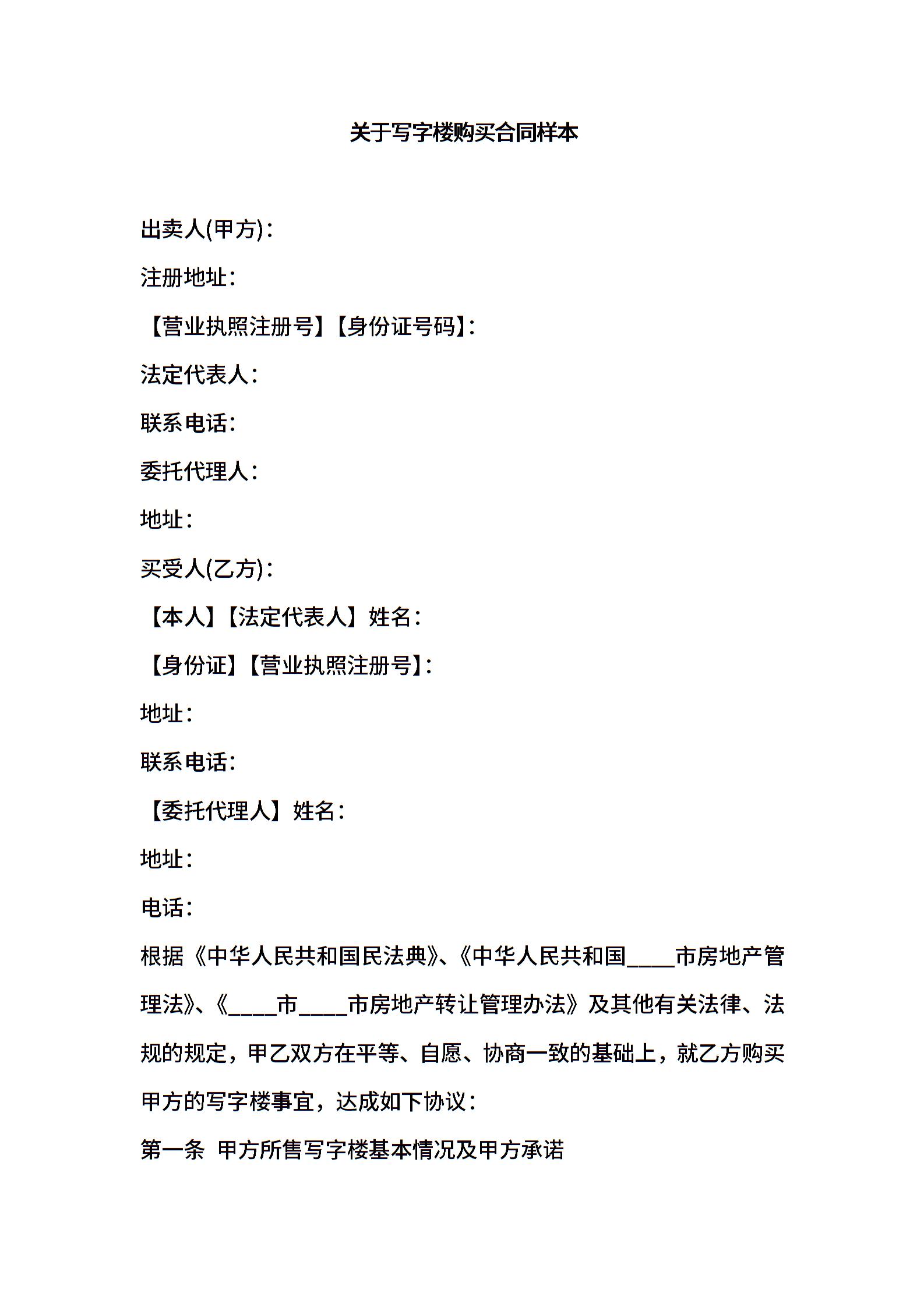 关于写字楼购买合同样本