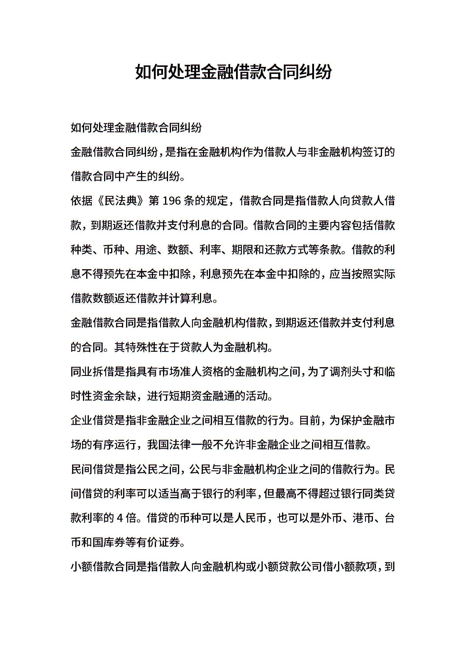 如何处理金融借款合同纠纷