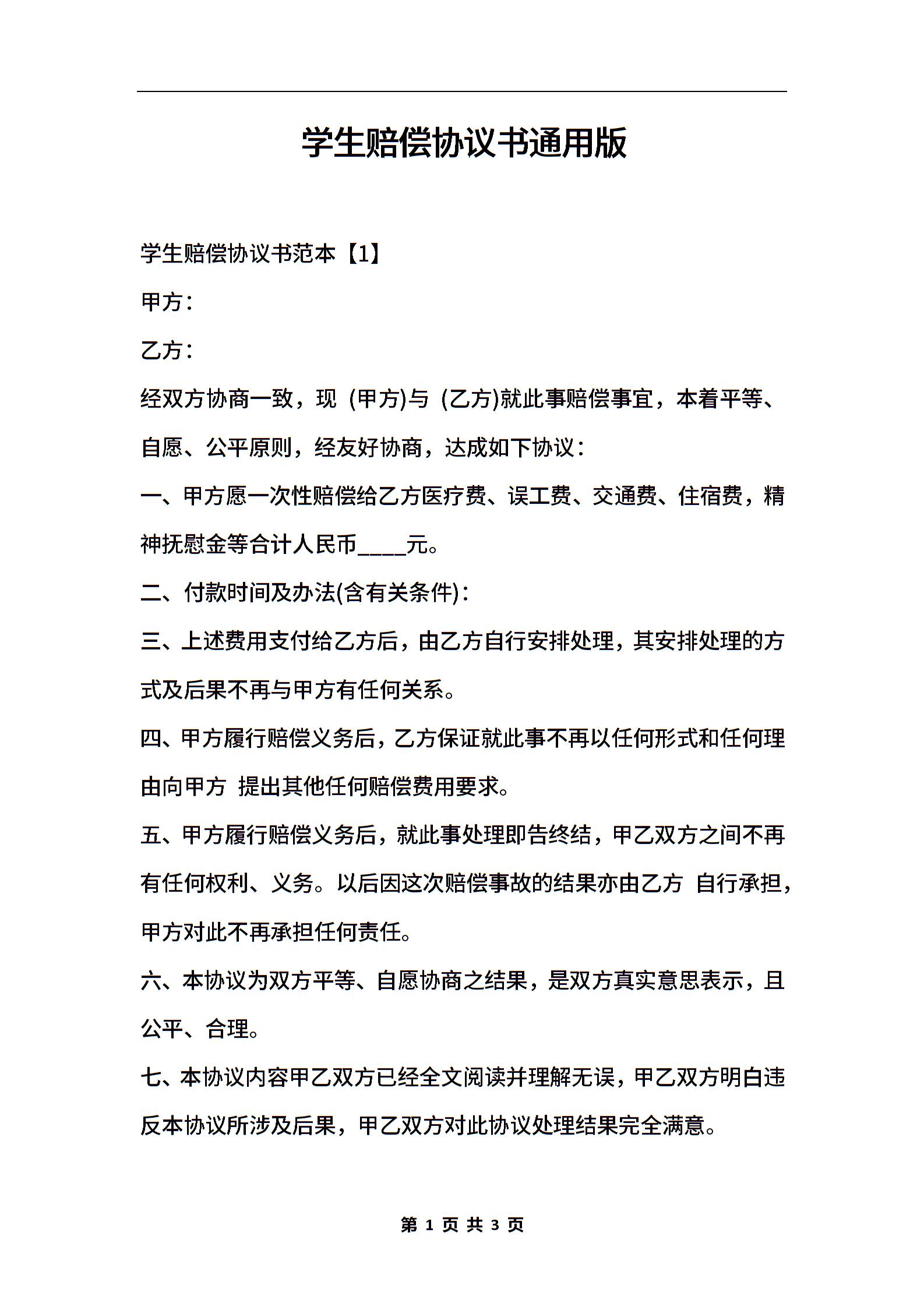 当前位置:量子办公 > 合同模板 > 赔偿协议 >