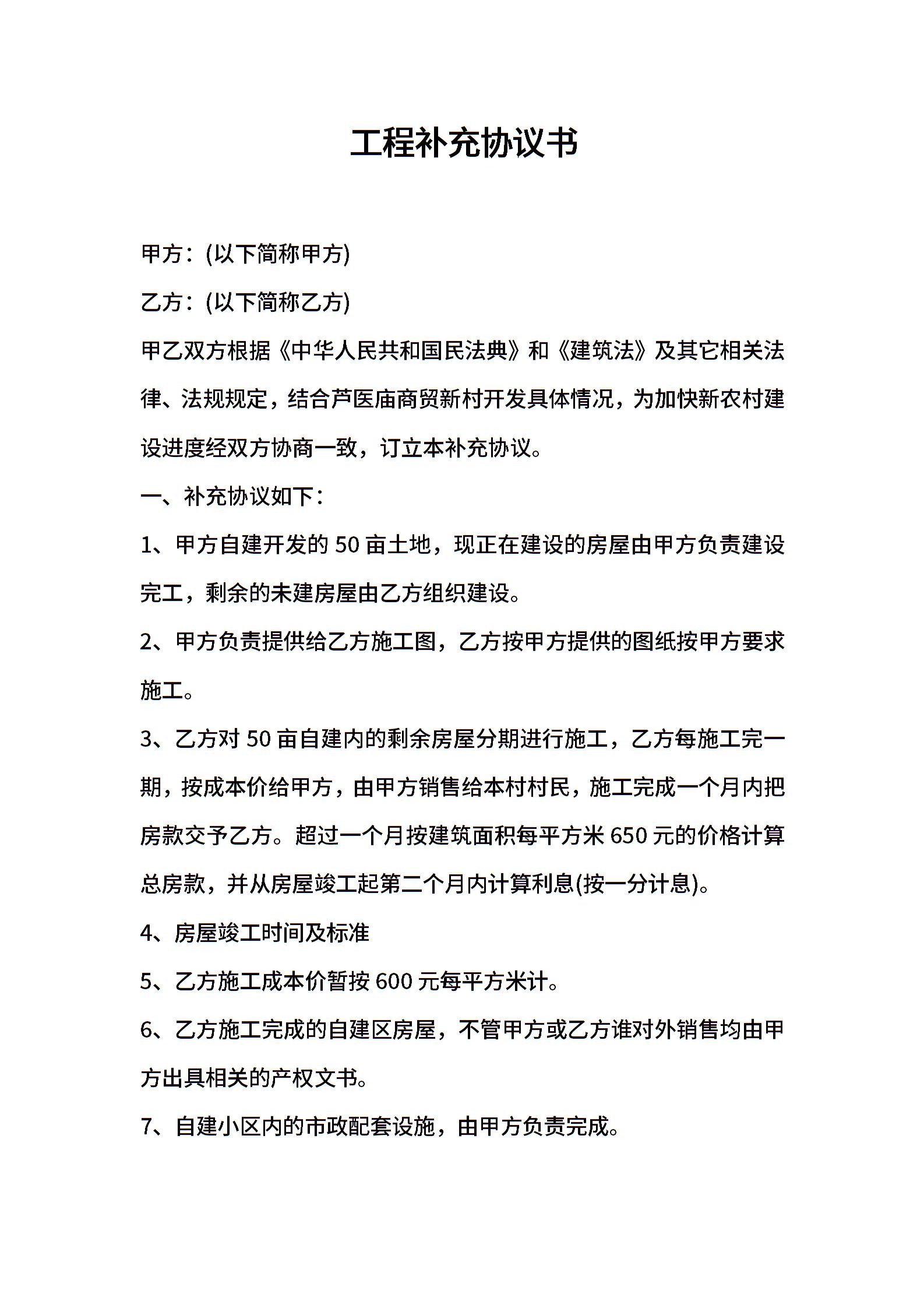 工程补充协议书