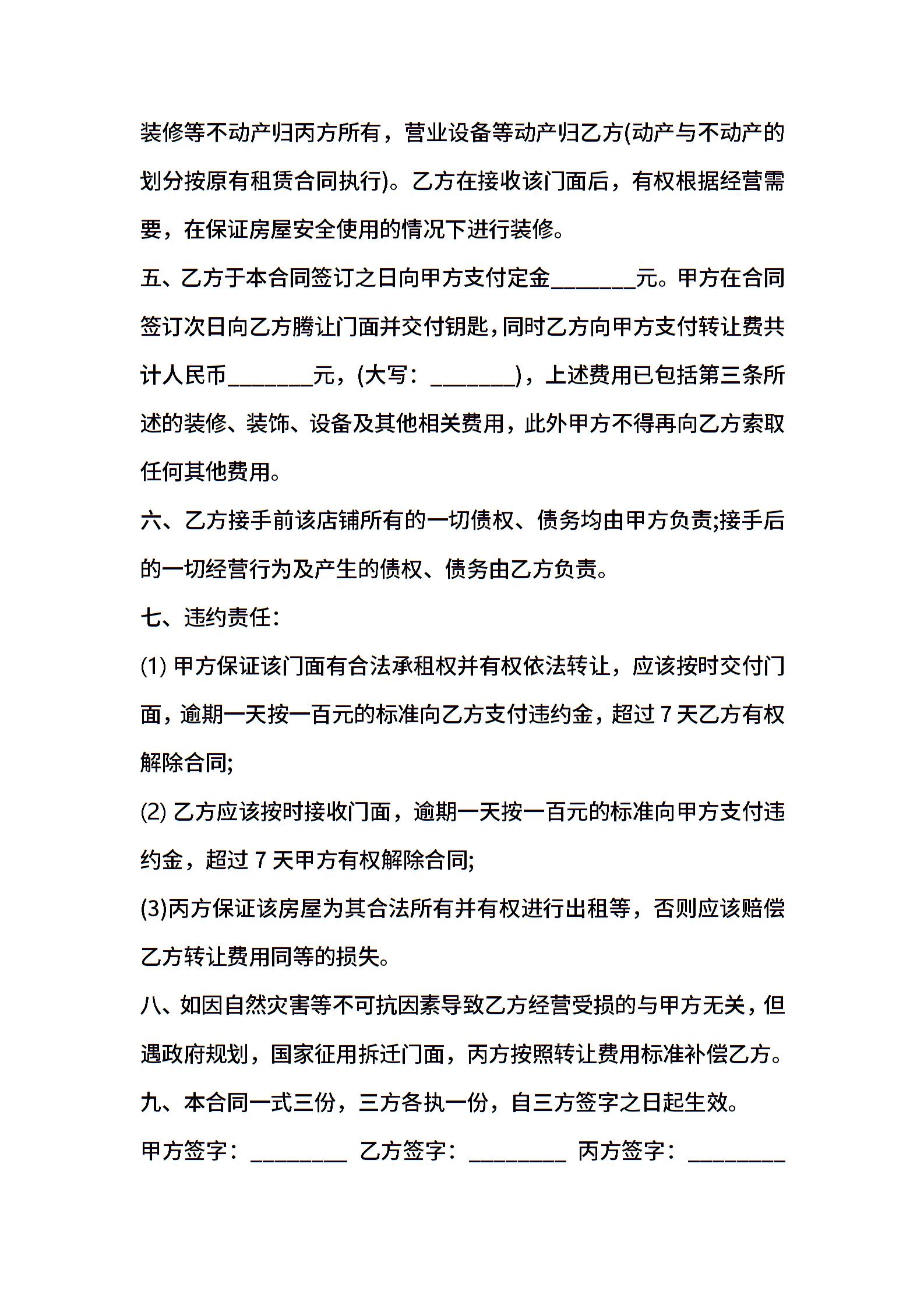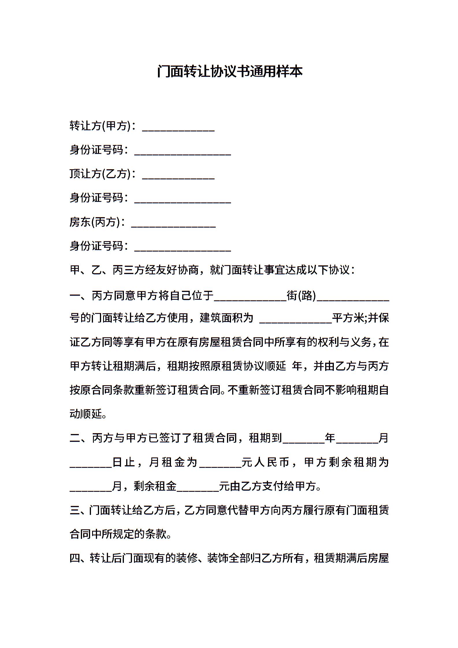 门面转让协议书通用样本