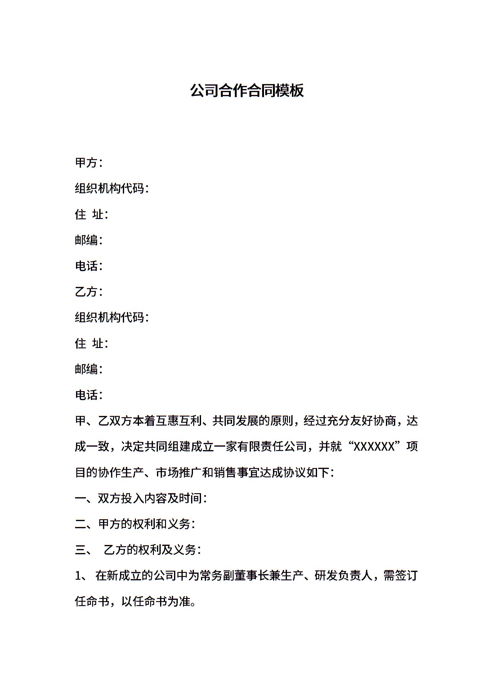 公司合作合同模板