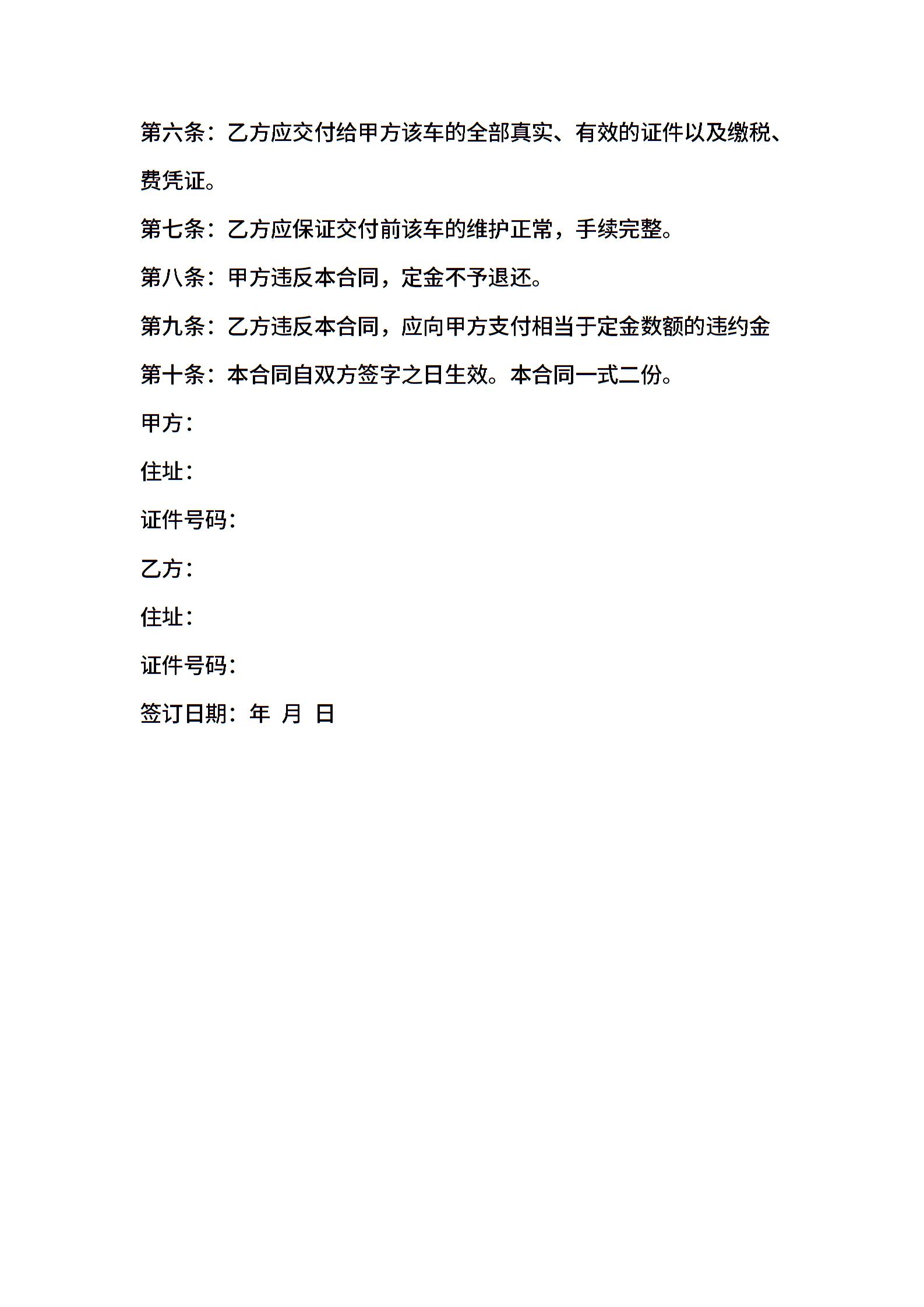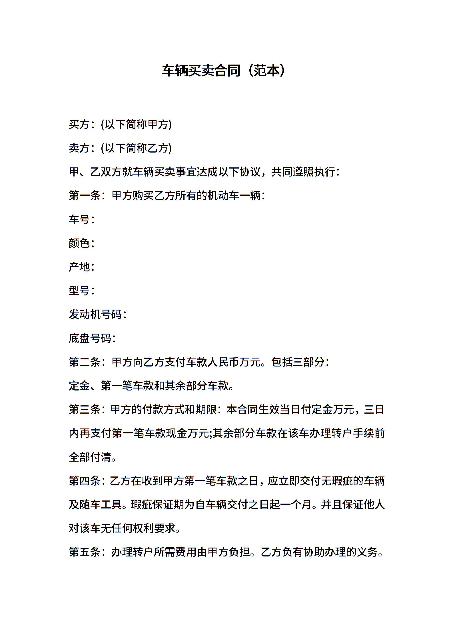 车辆买卖合同(范本)