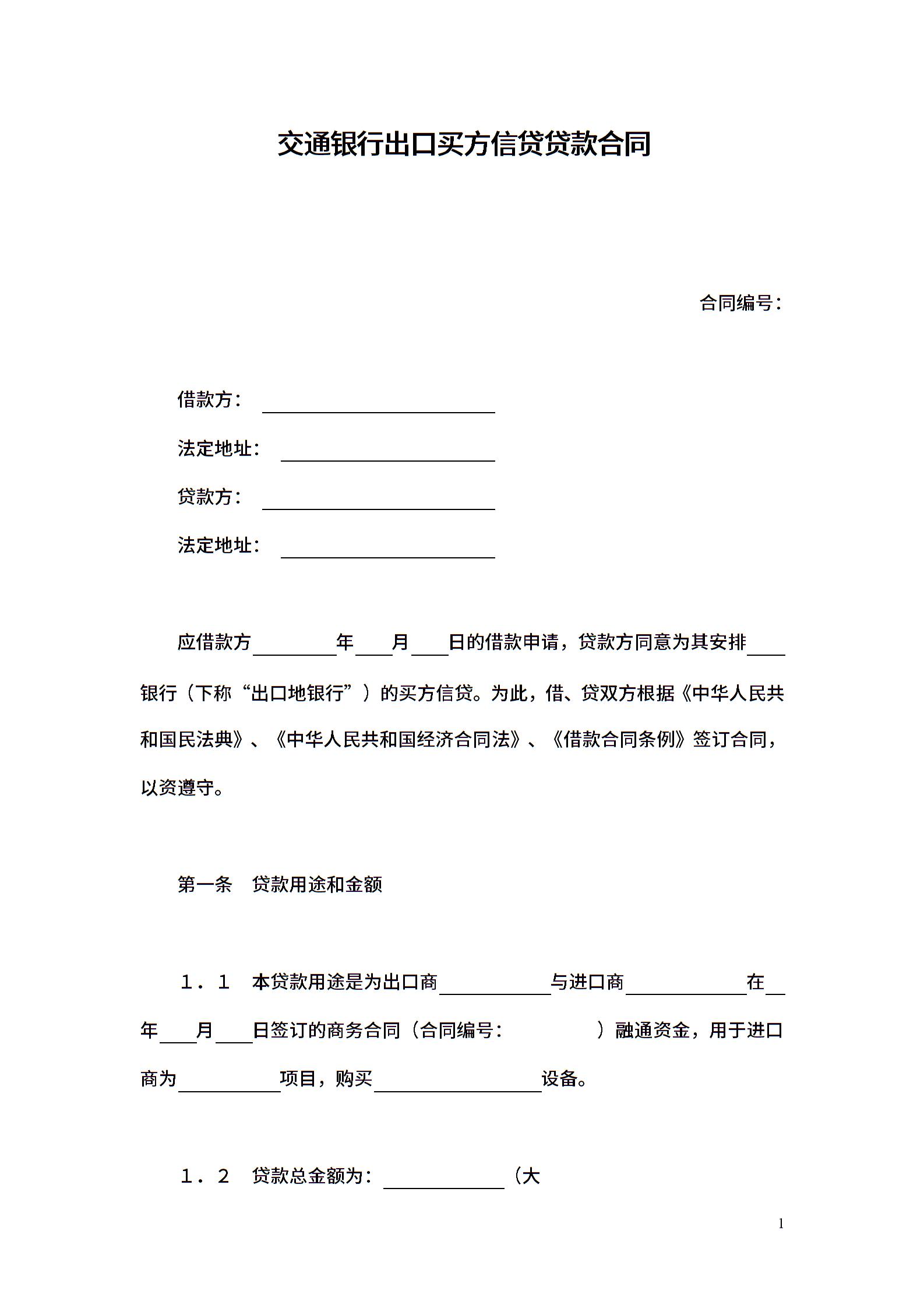 交通银行出口买方信贷贷款合同