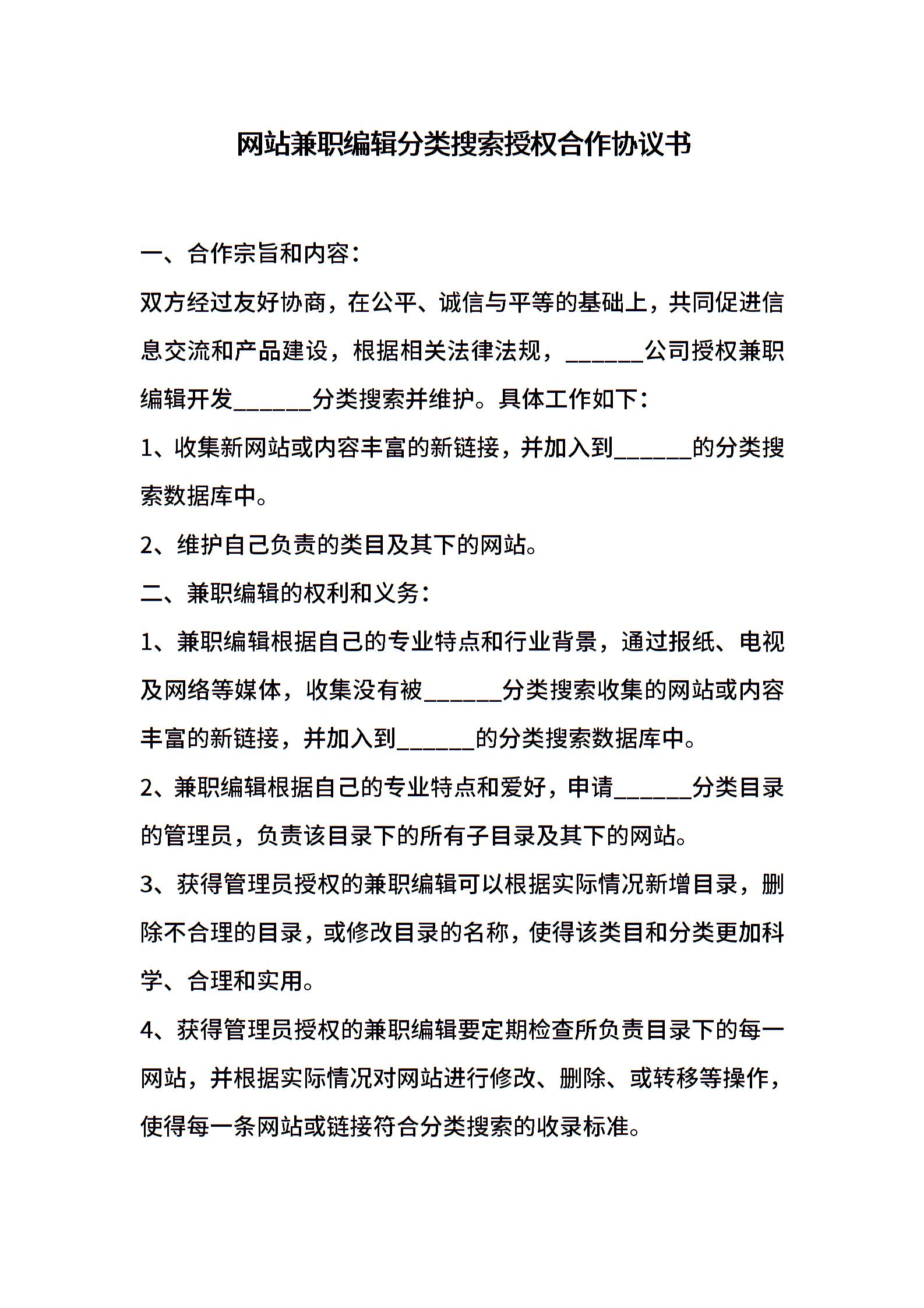 网站兼职编辑分类搜索授权合作协议书