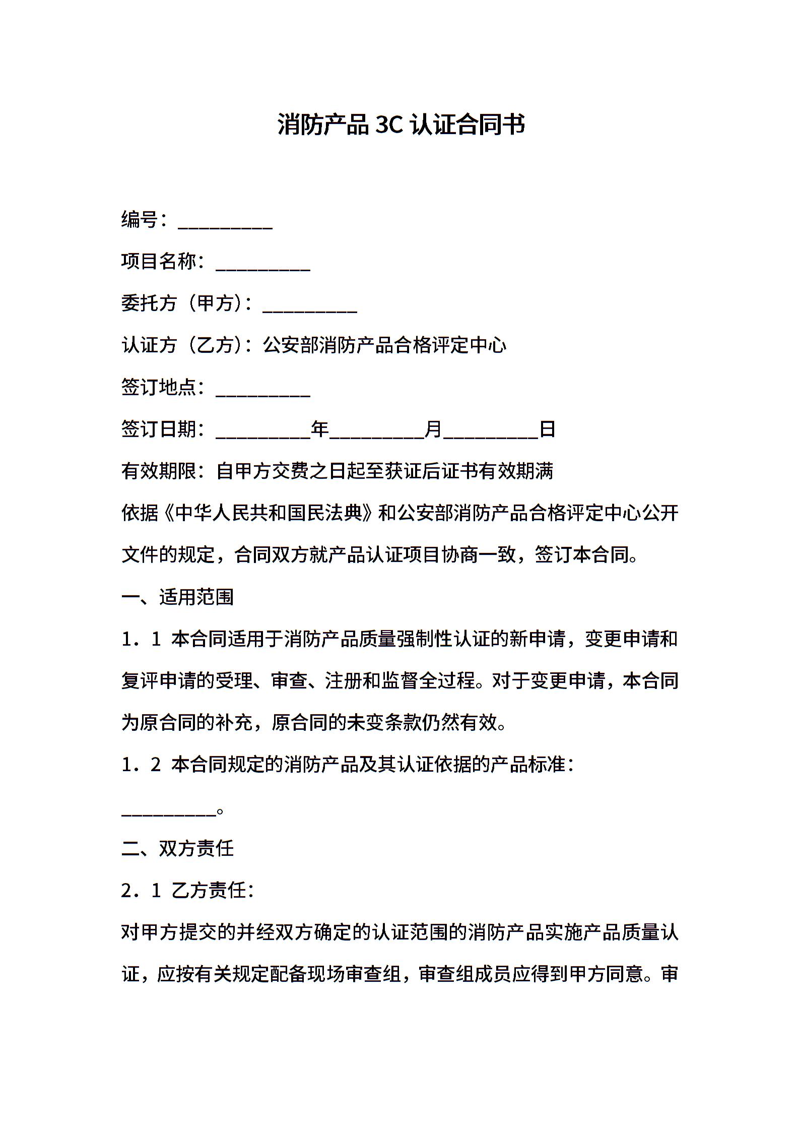 消防产品3C认证合同书