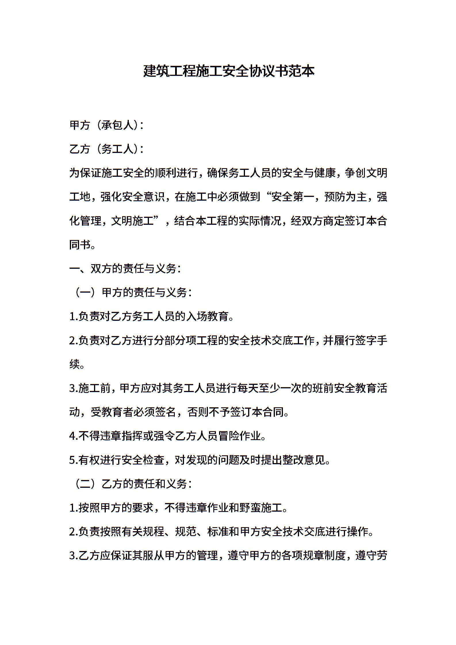 建筑工程施工安全协议书范本