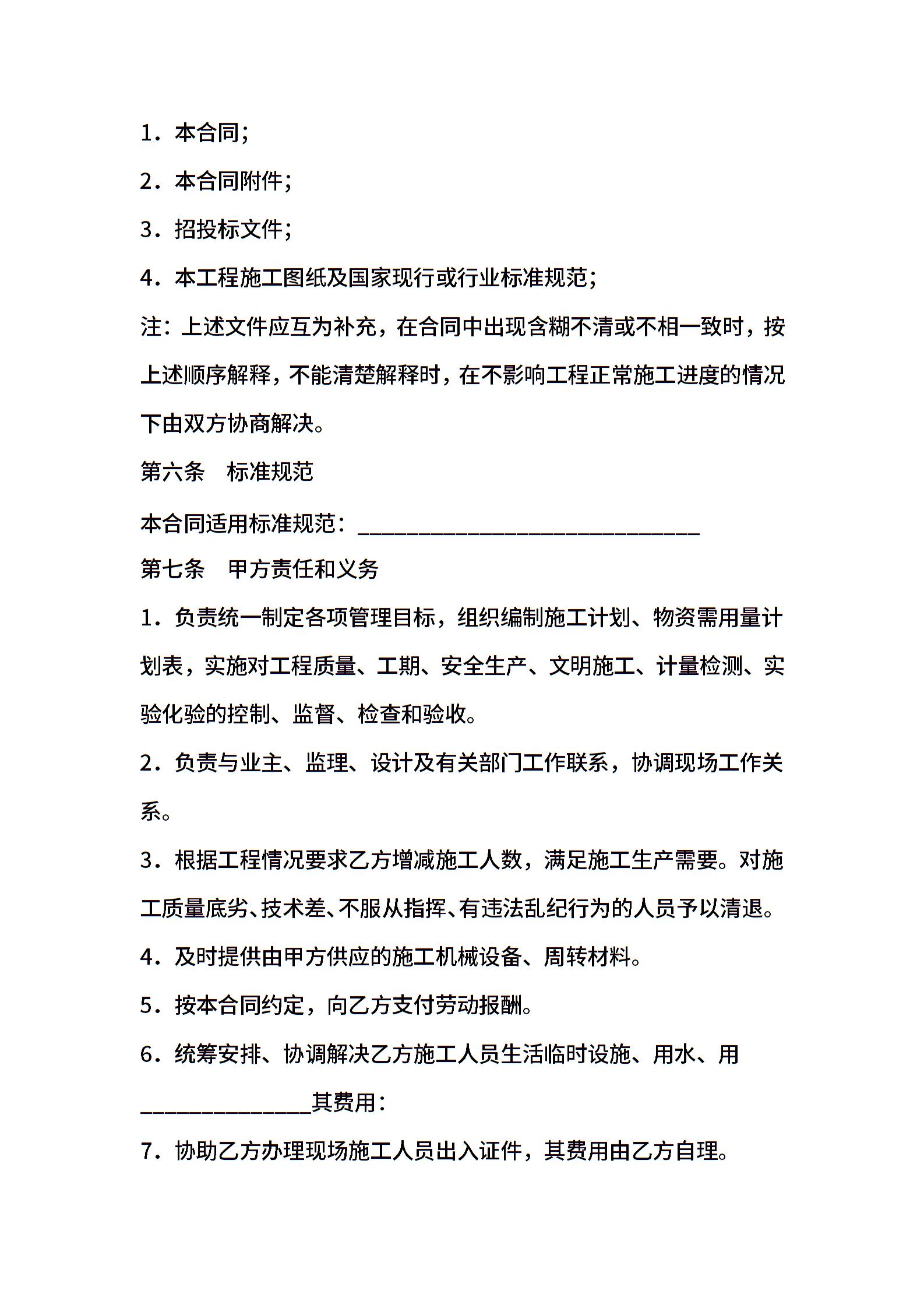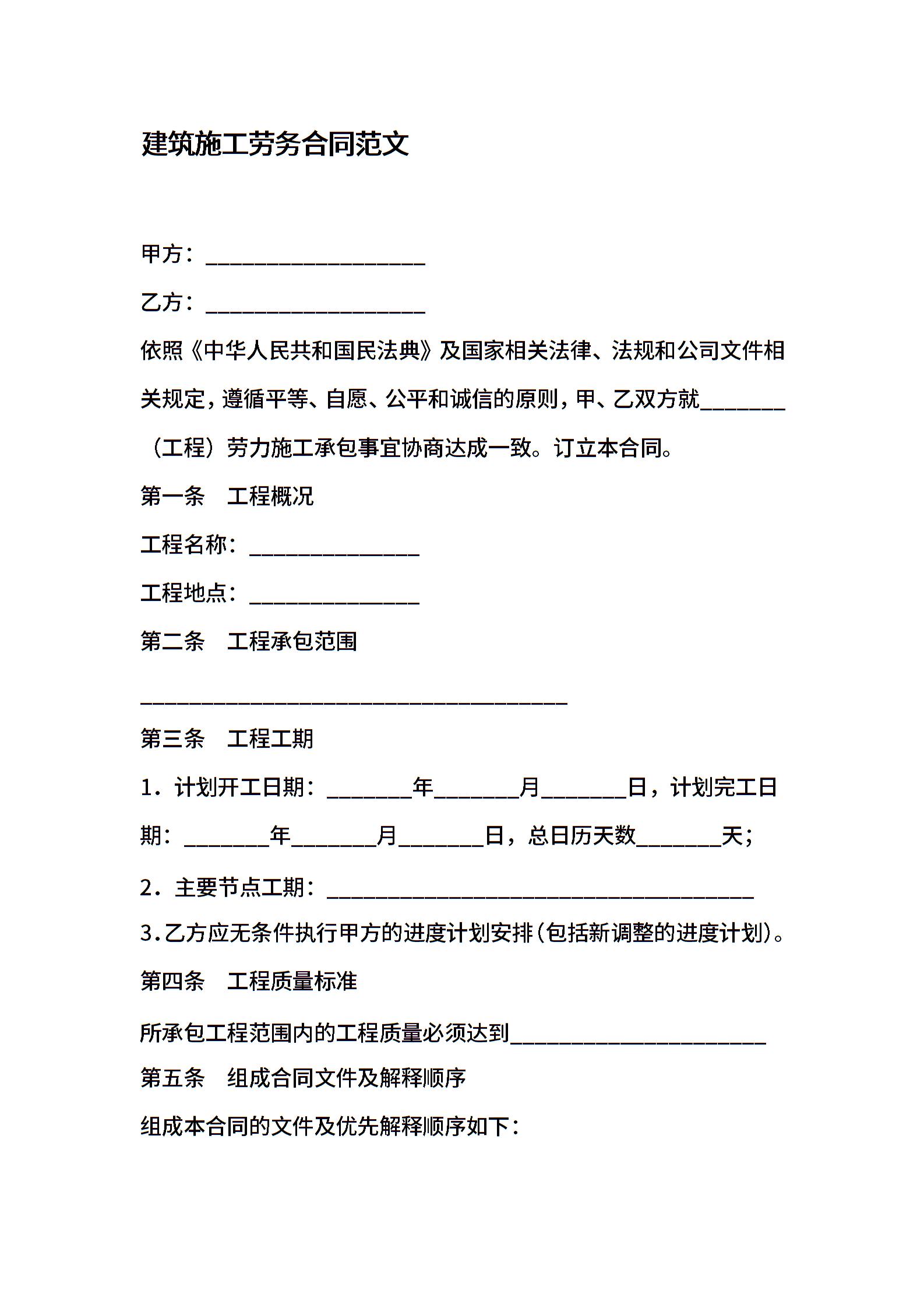 建筑施工劳务合同范文