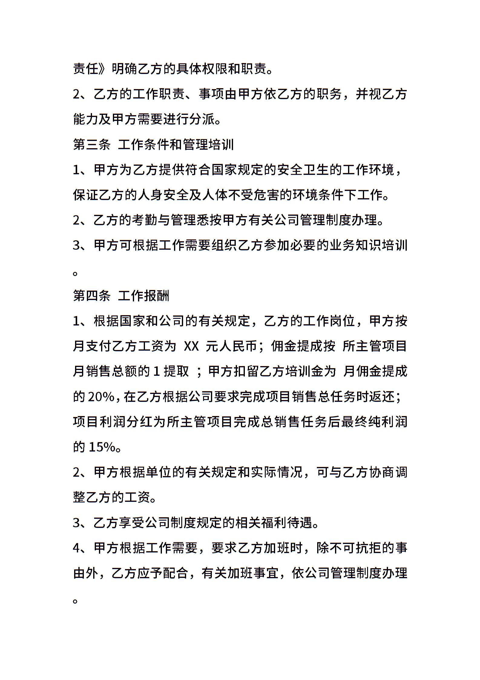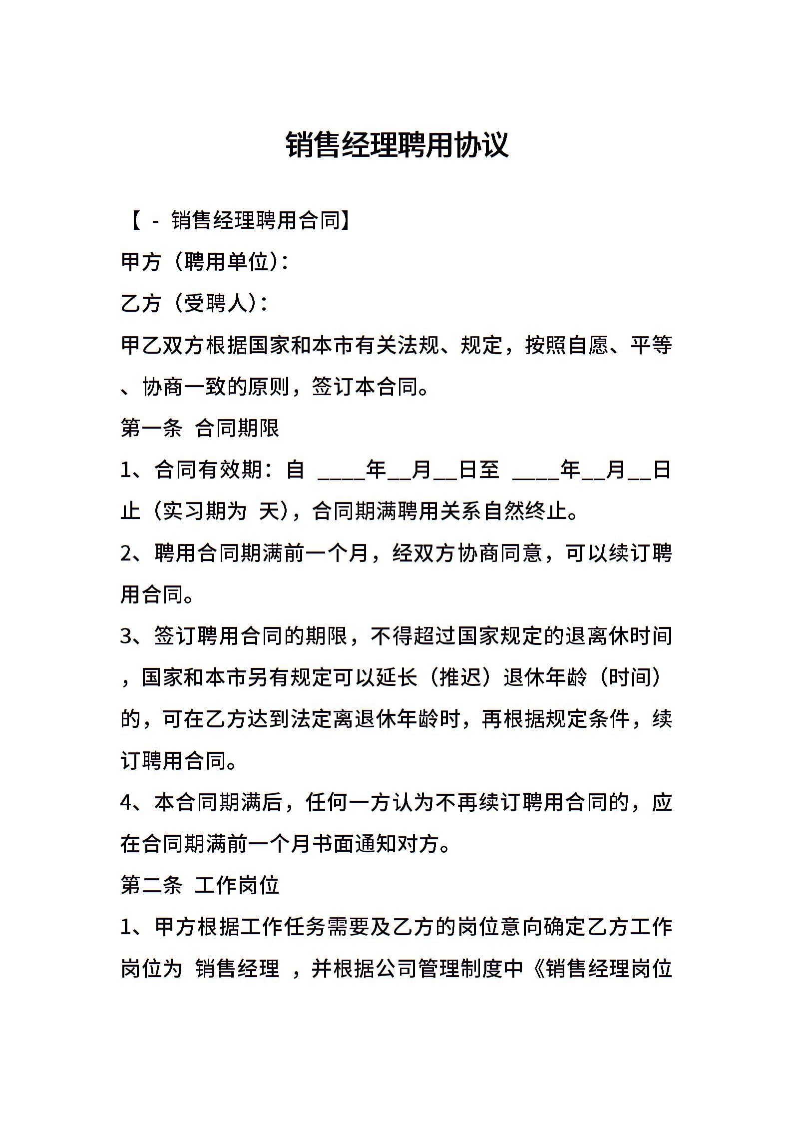 销售经理聘用协议