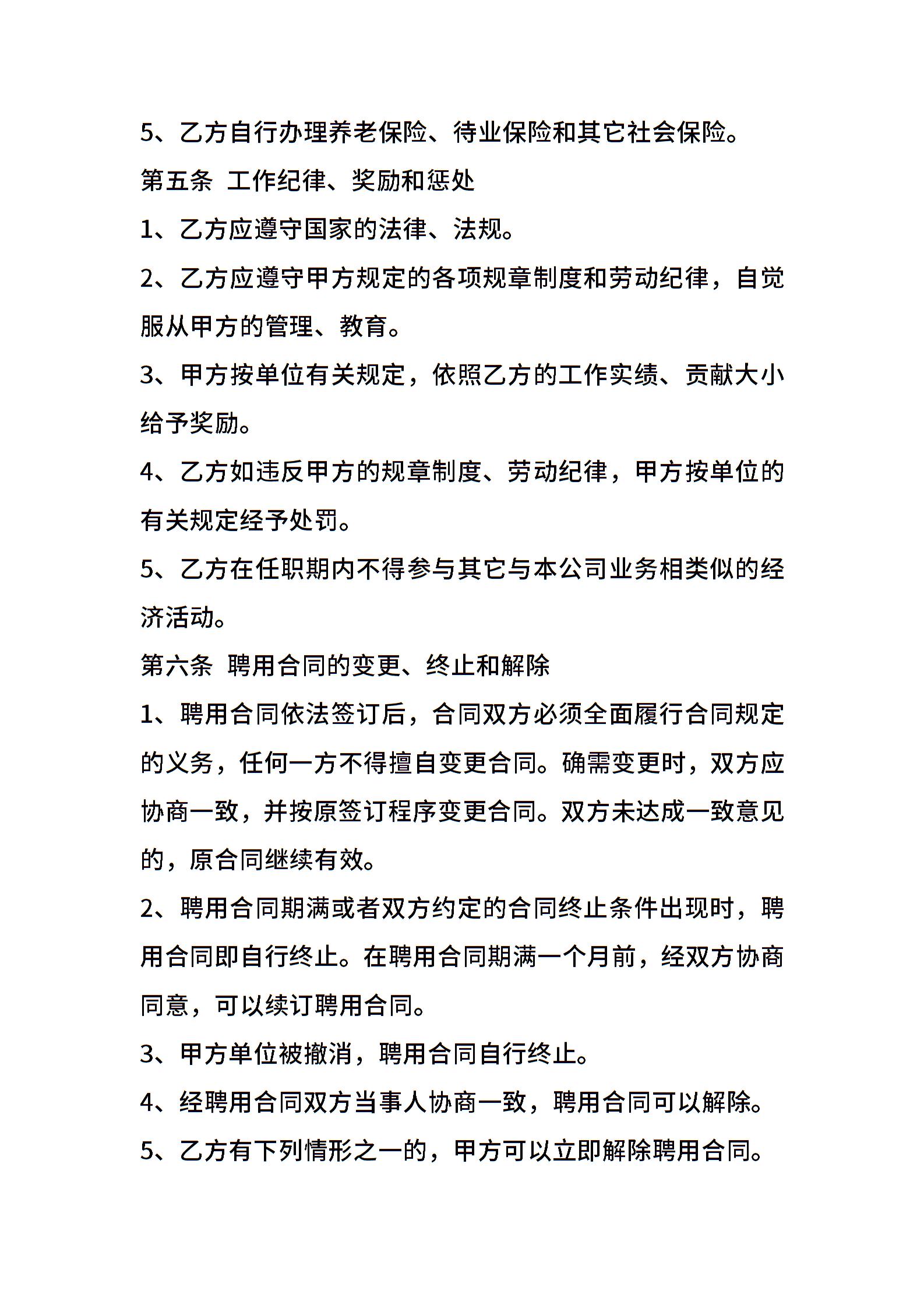 • 分类 聘用合同