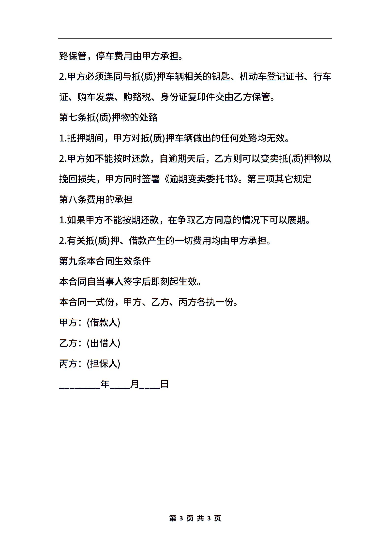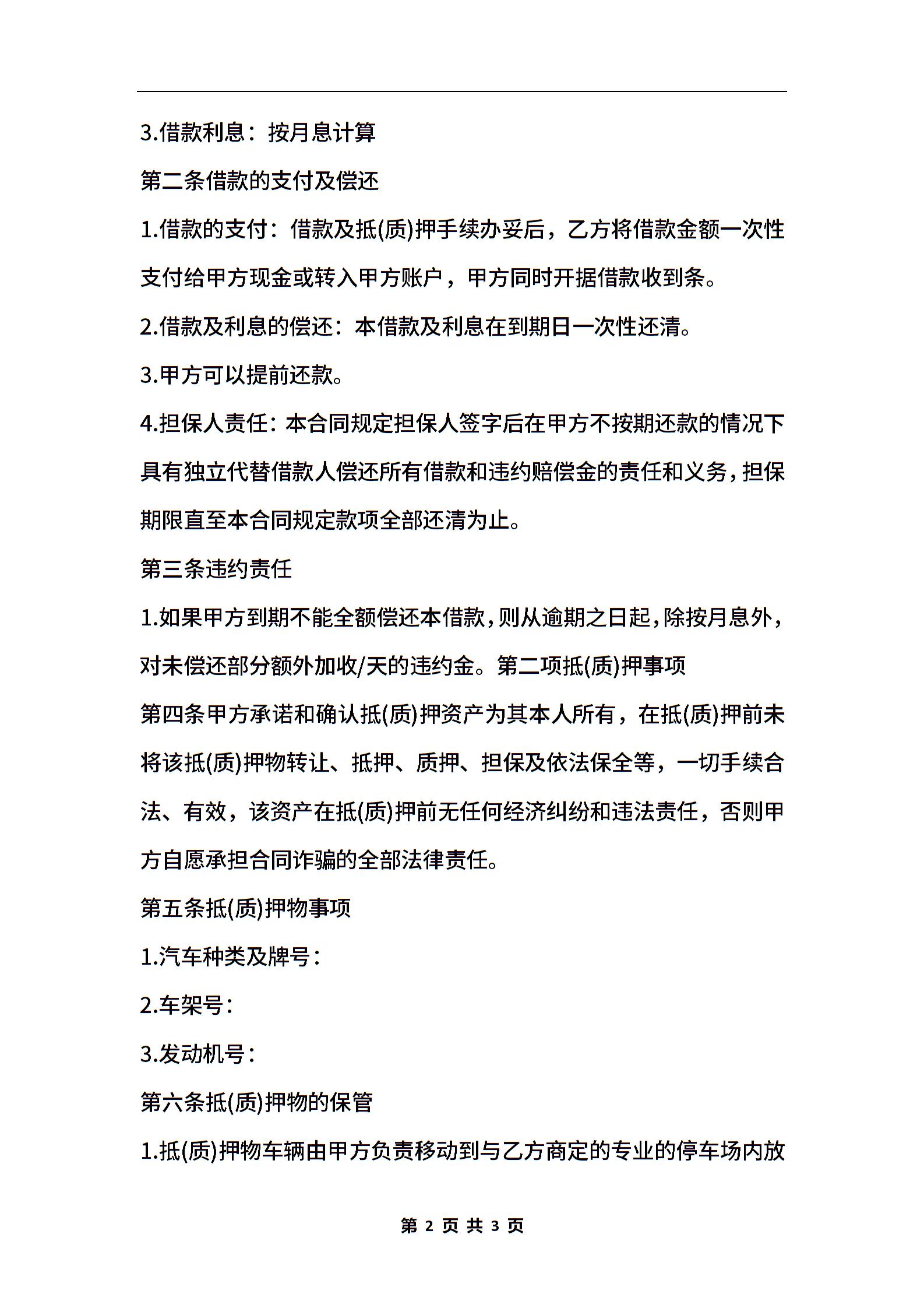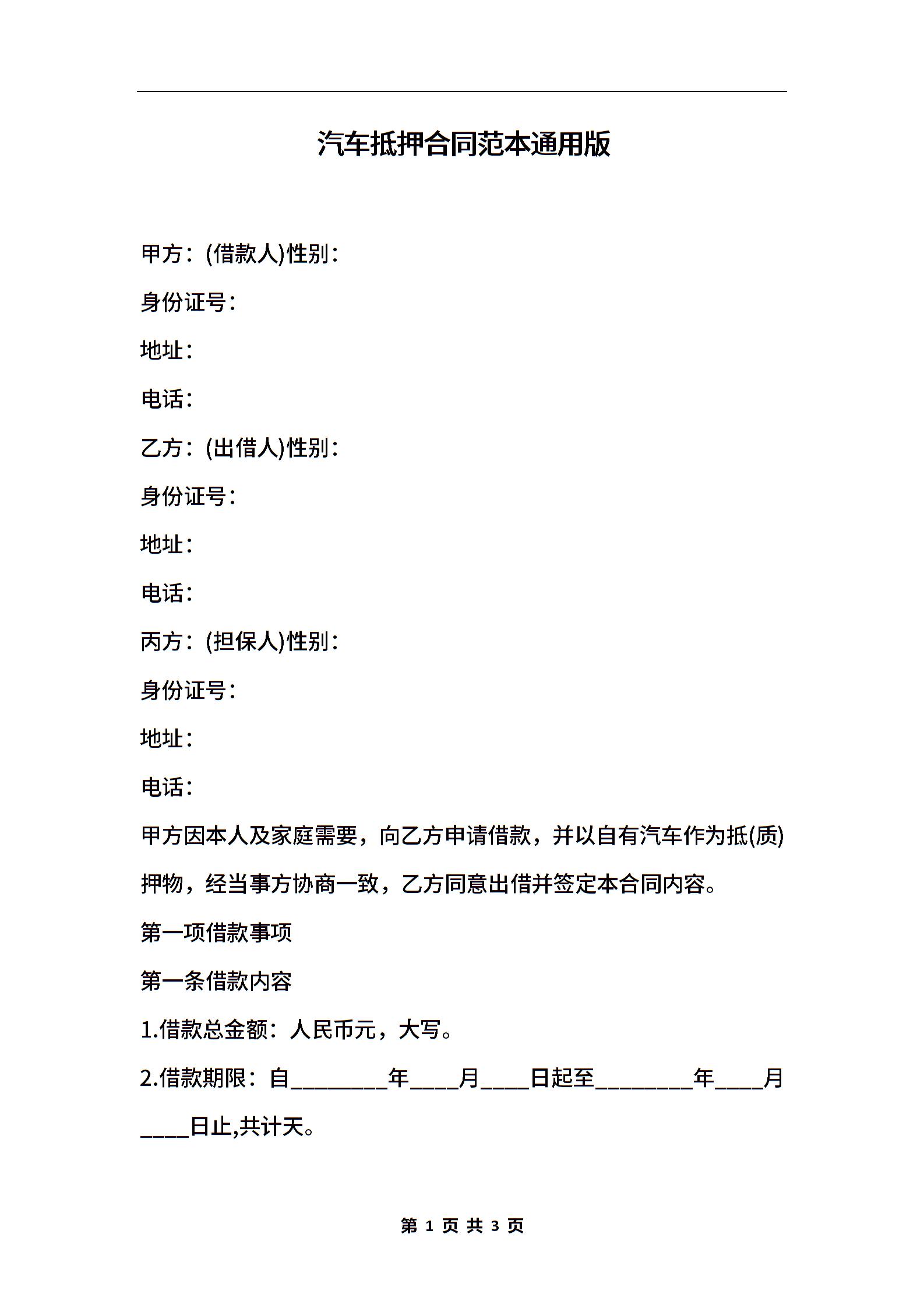 汽车抵押合同范本通用版