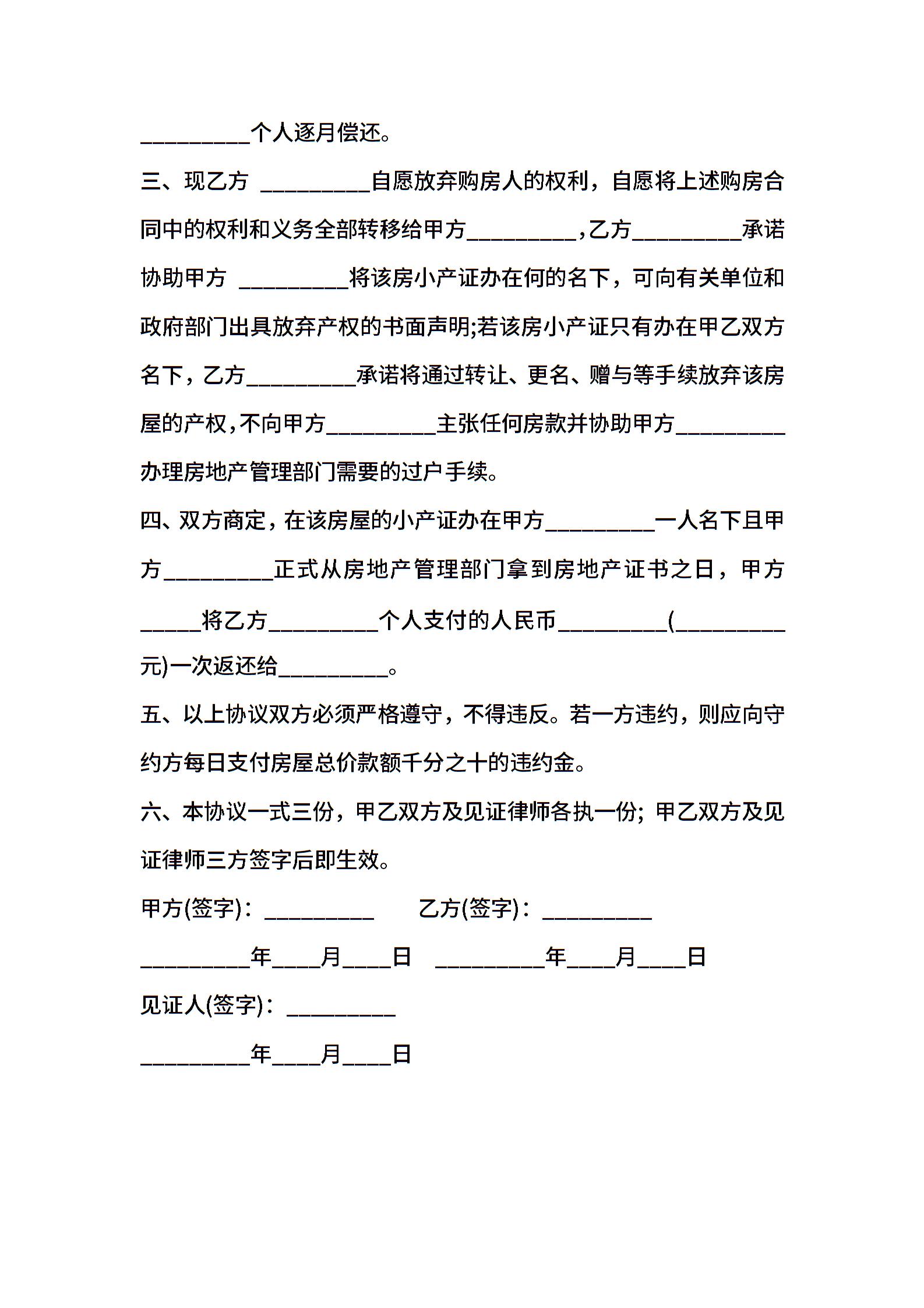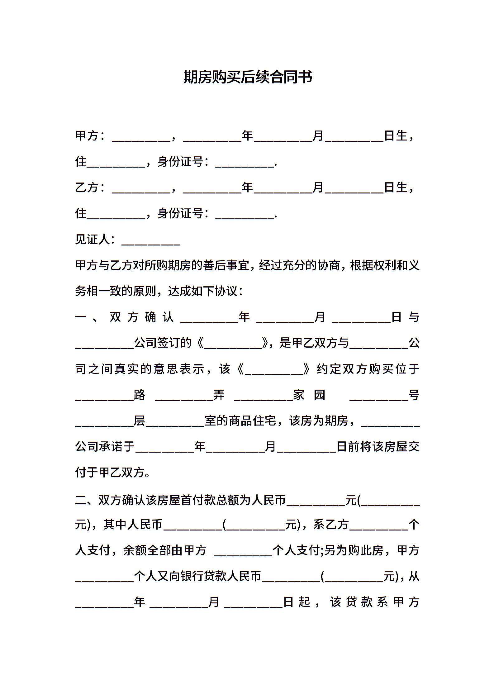 期房购买后续合同书