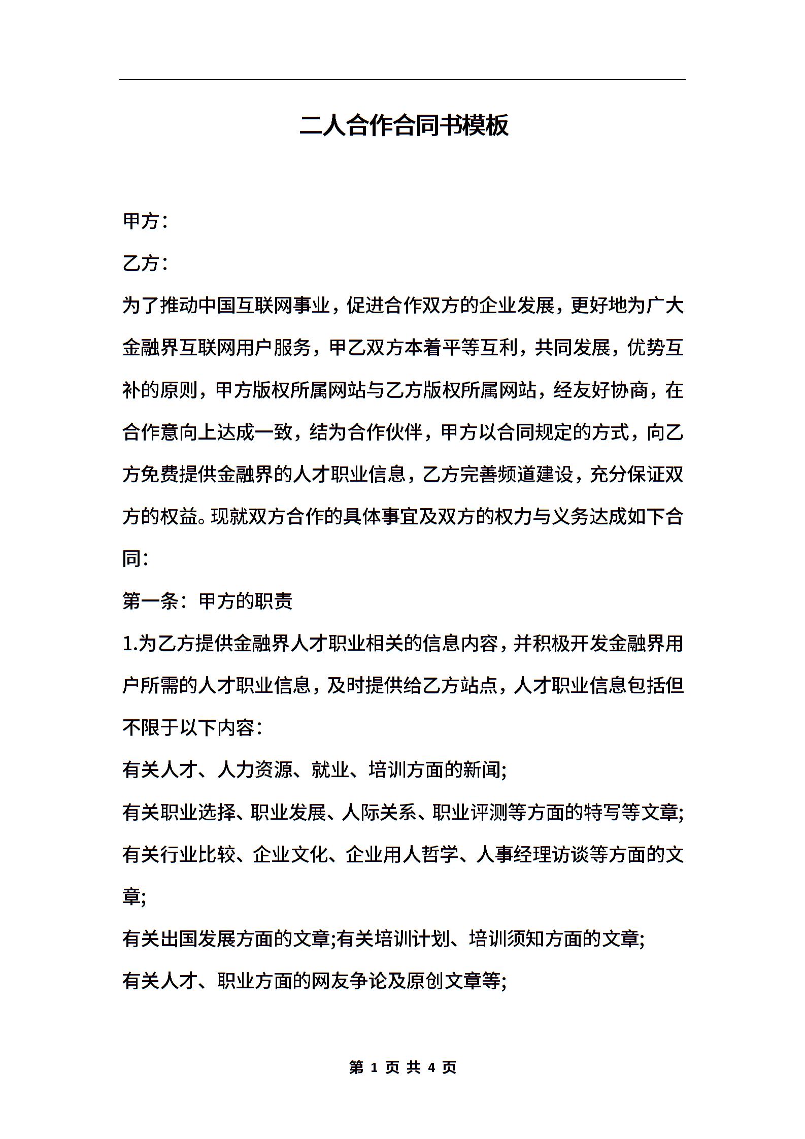 当前位置:量子办公 > 合同模板 > 合作合同 >
