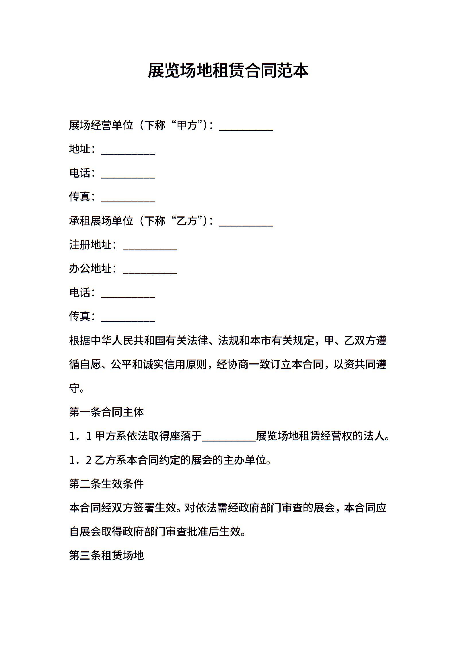 2021年展览场地租赁合同范本