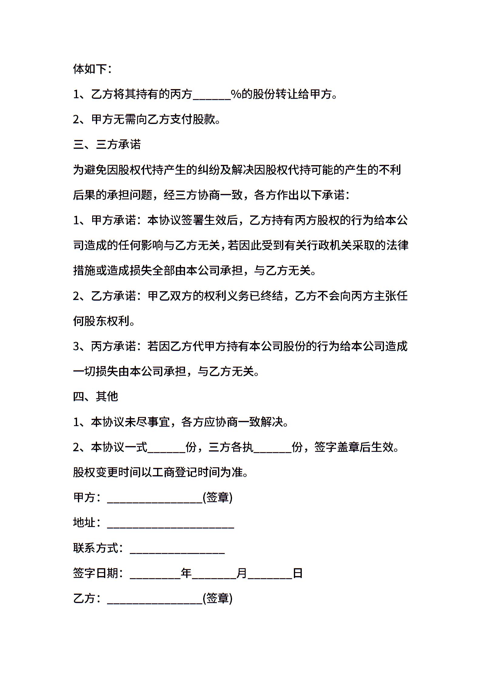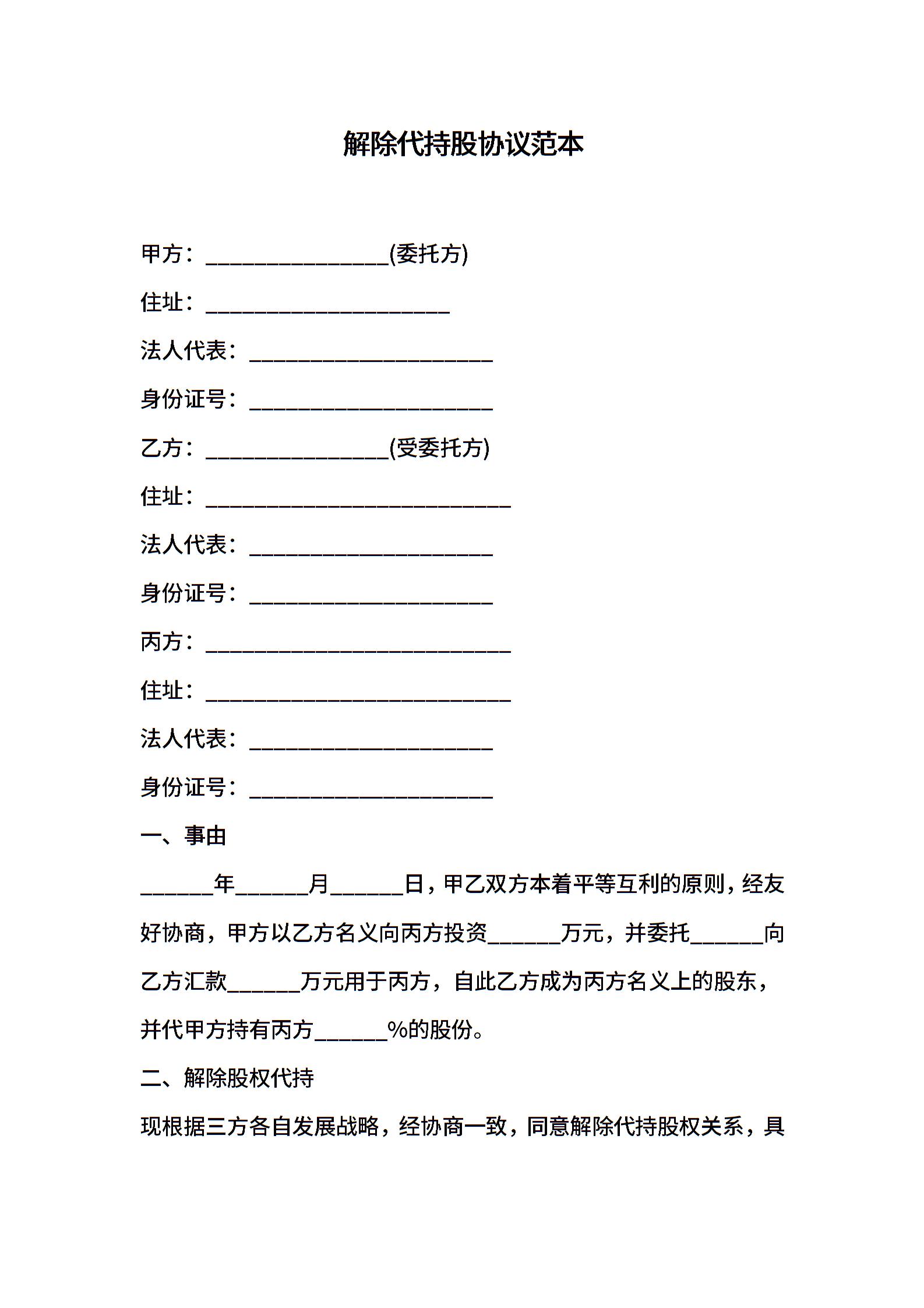 解除代持股协议范本
