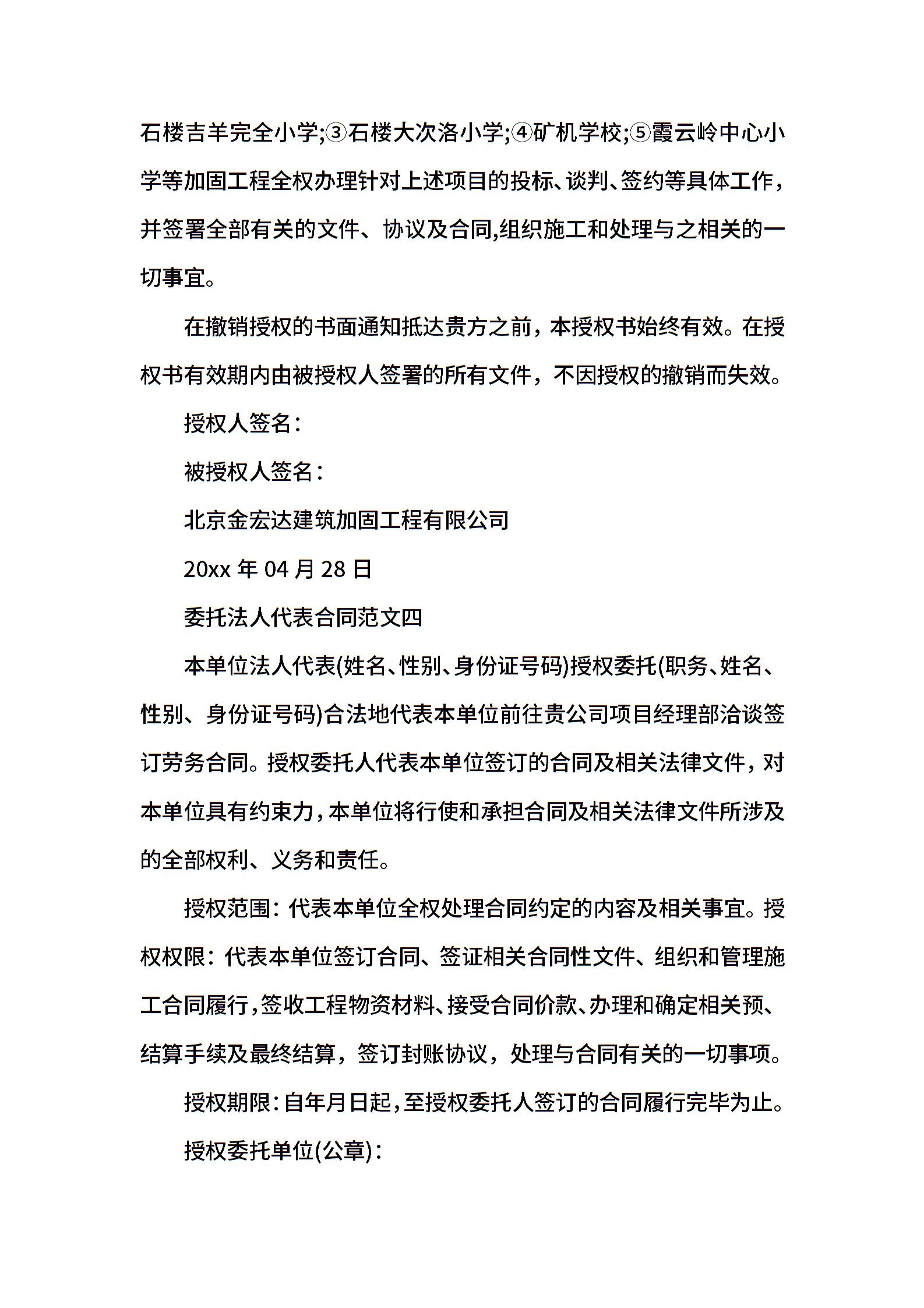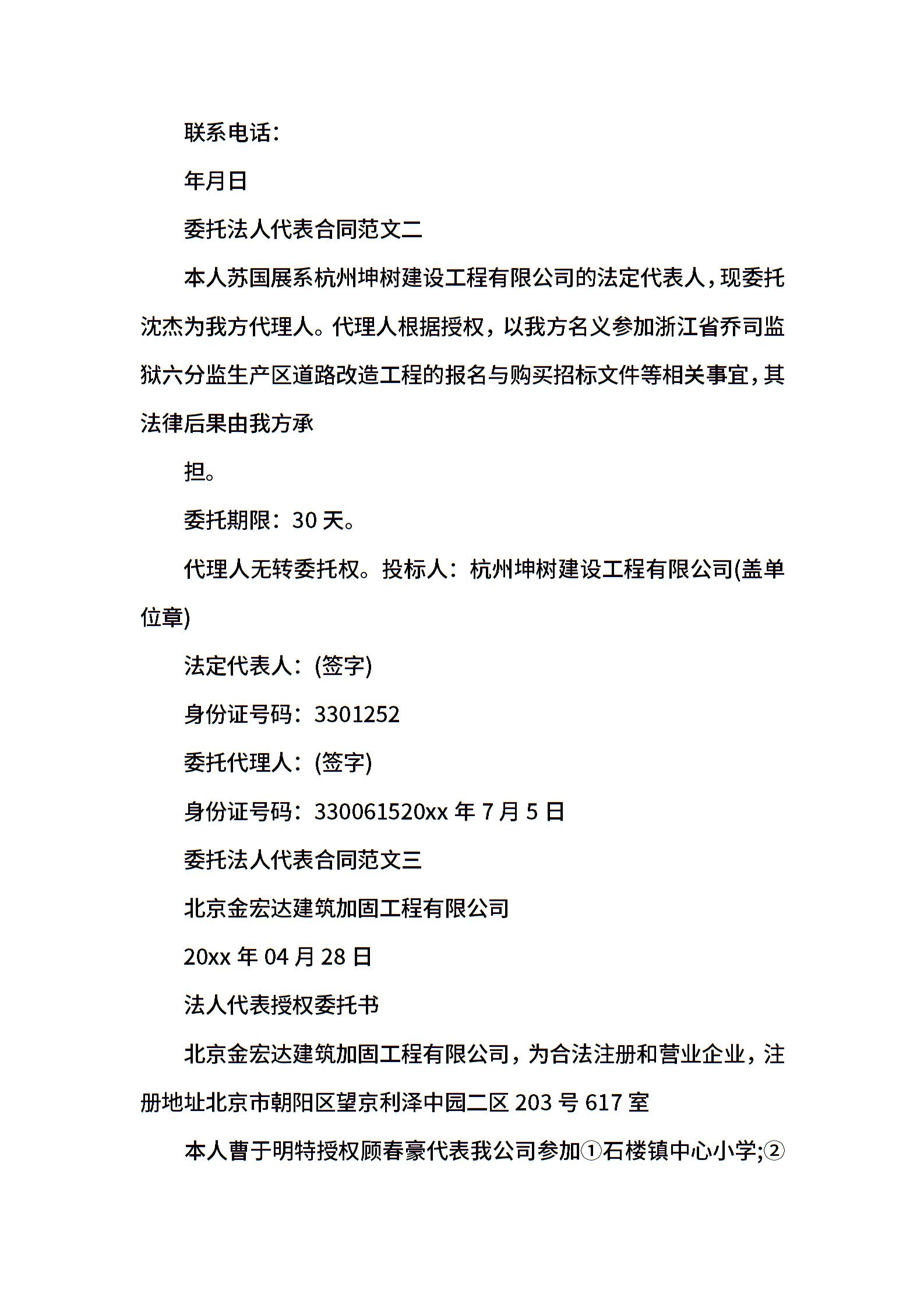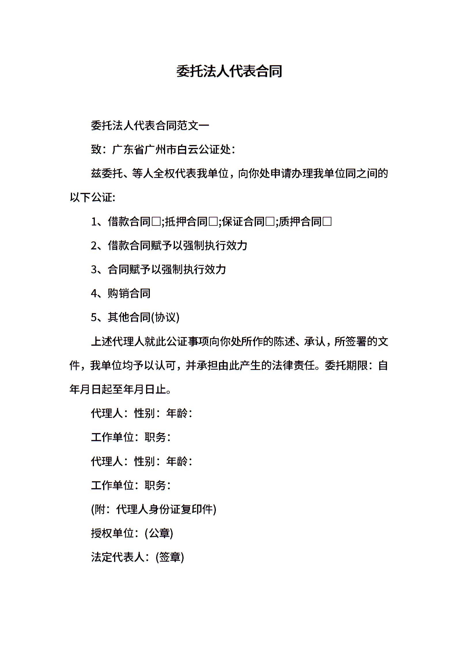 委托法人代表合同