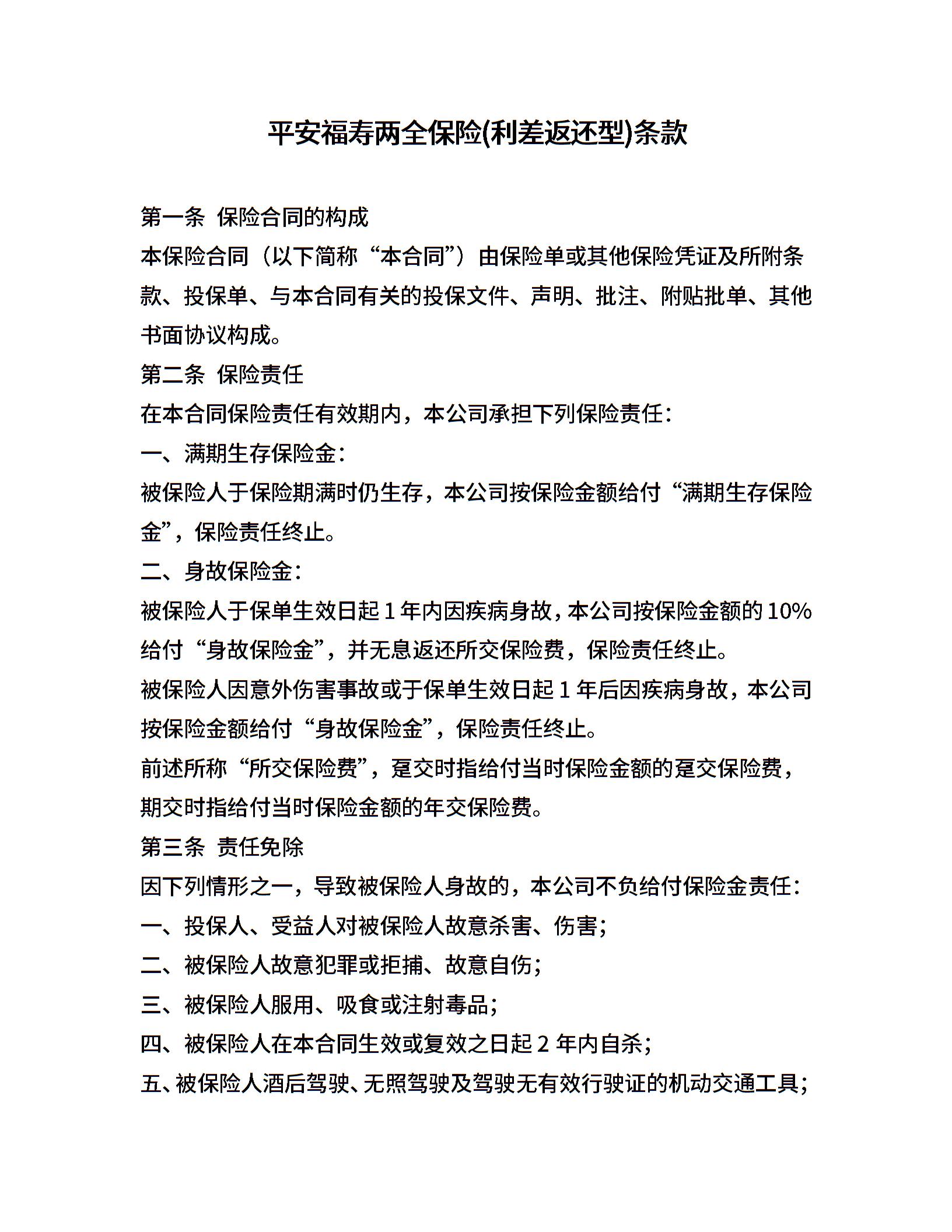 平安福寿两全保险(利差返还型)条款 (2)