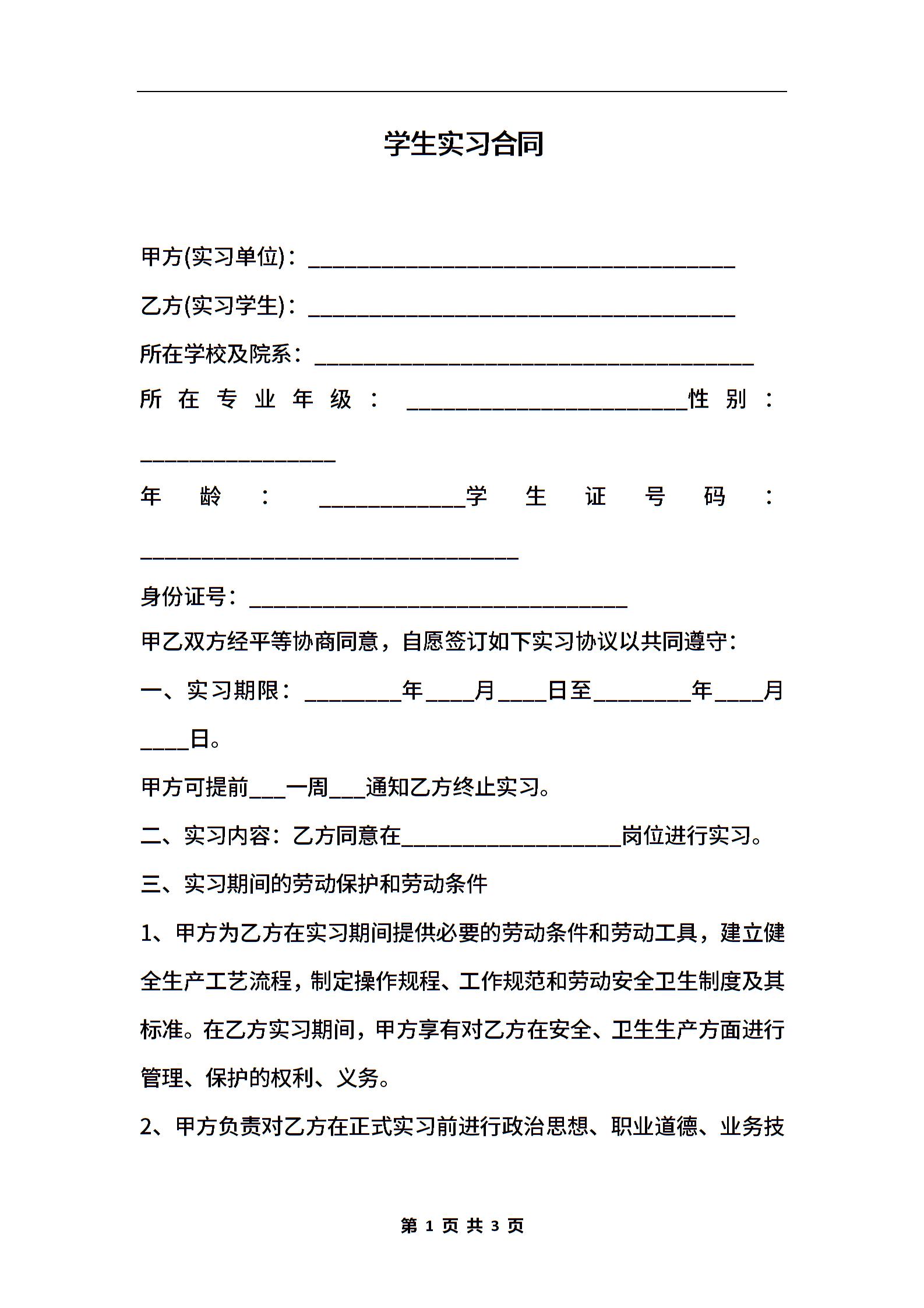当前位置:量子办公 > 合同模板 > 实习协议 >