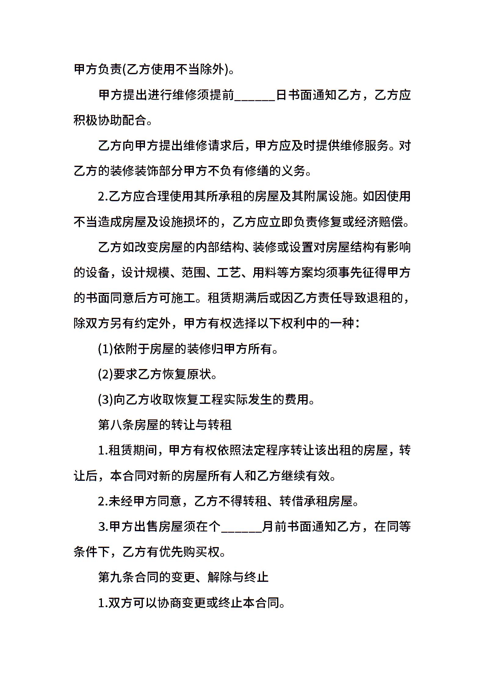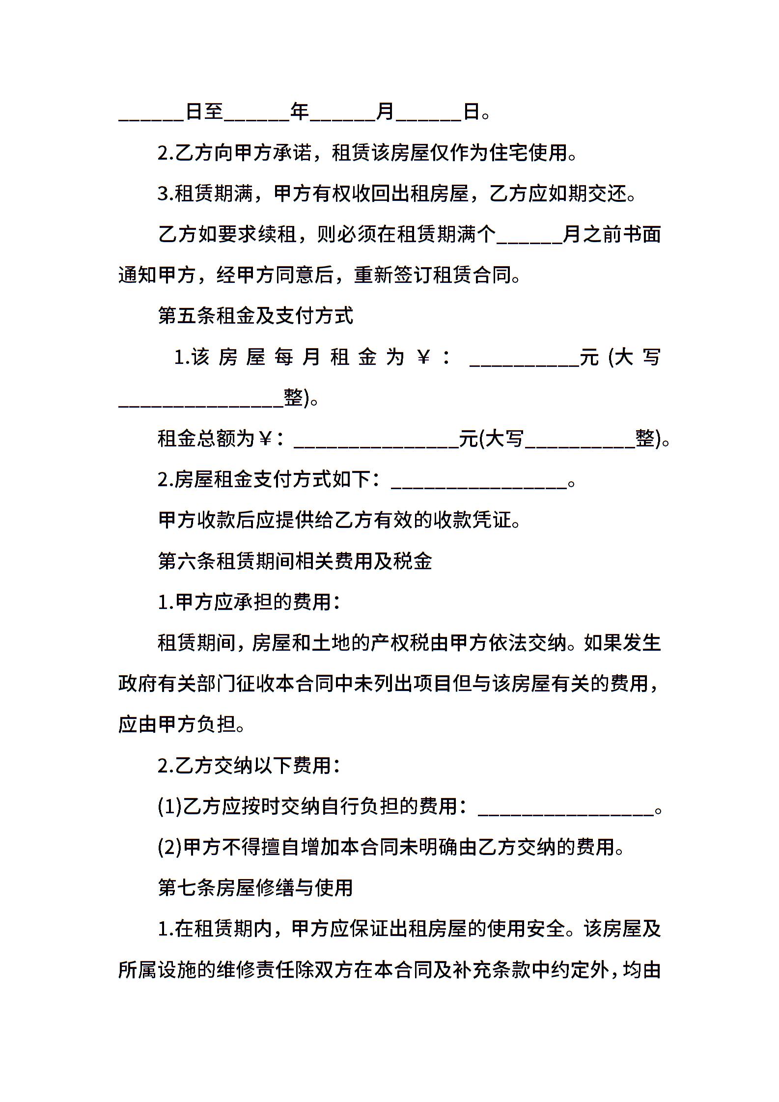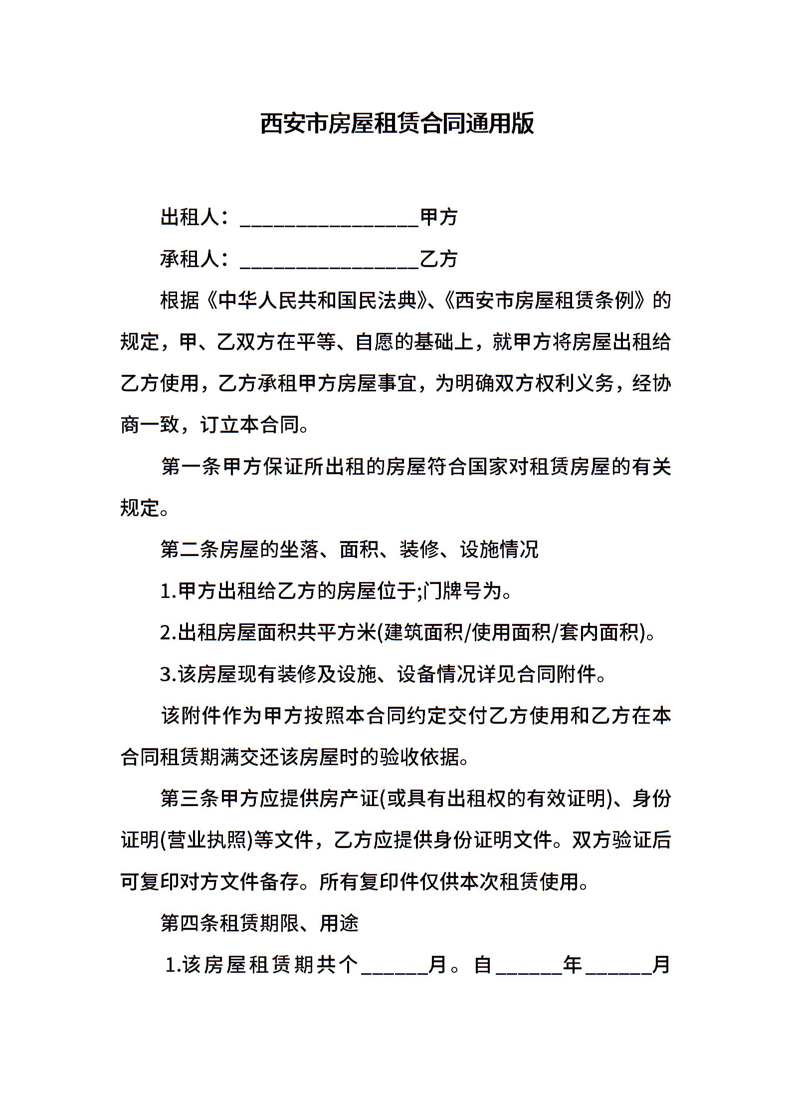 西安市房屋租赁合同通用版