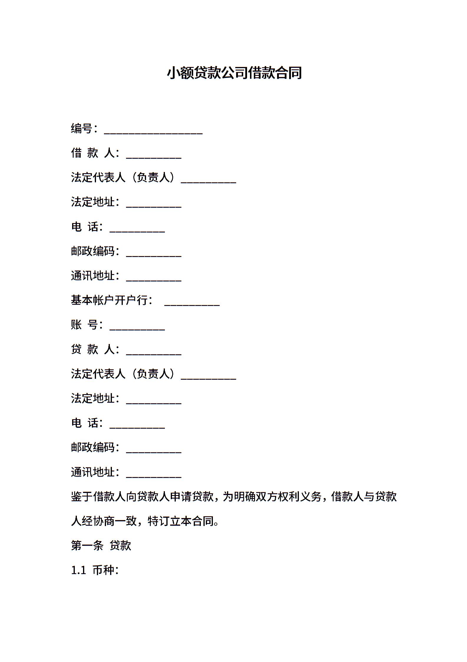 小额贷款公司借款合同
