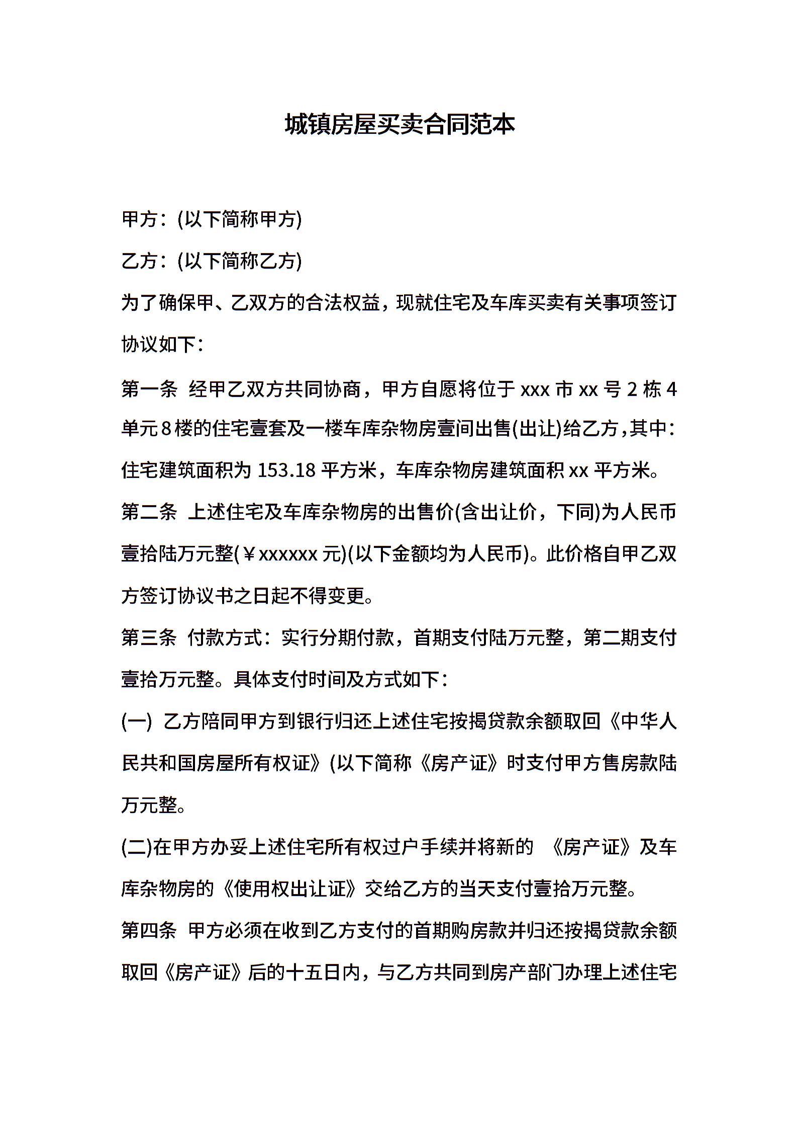 城镇房屋买卖合同范本