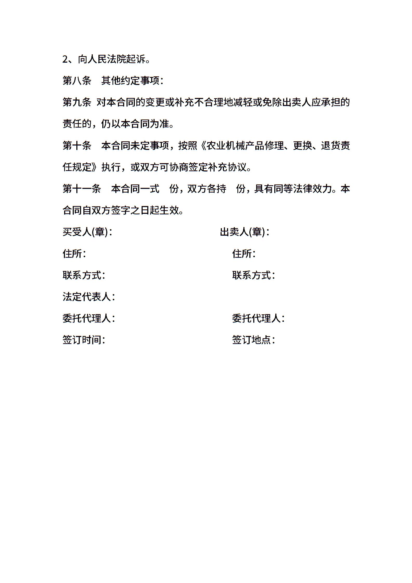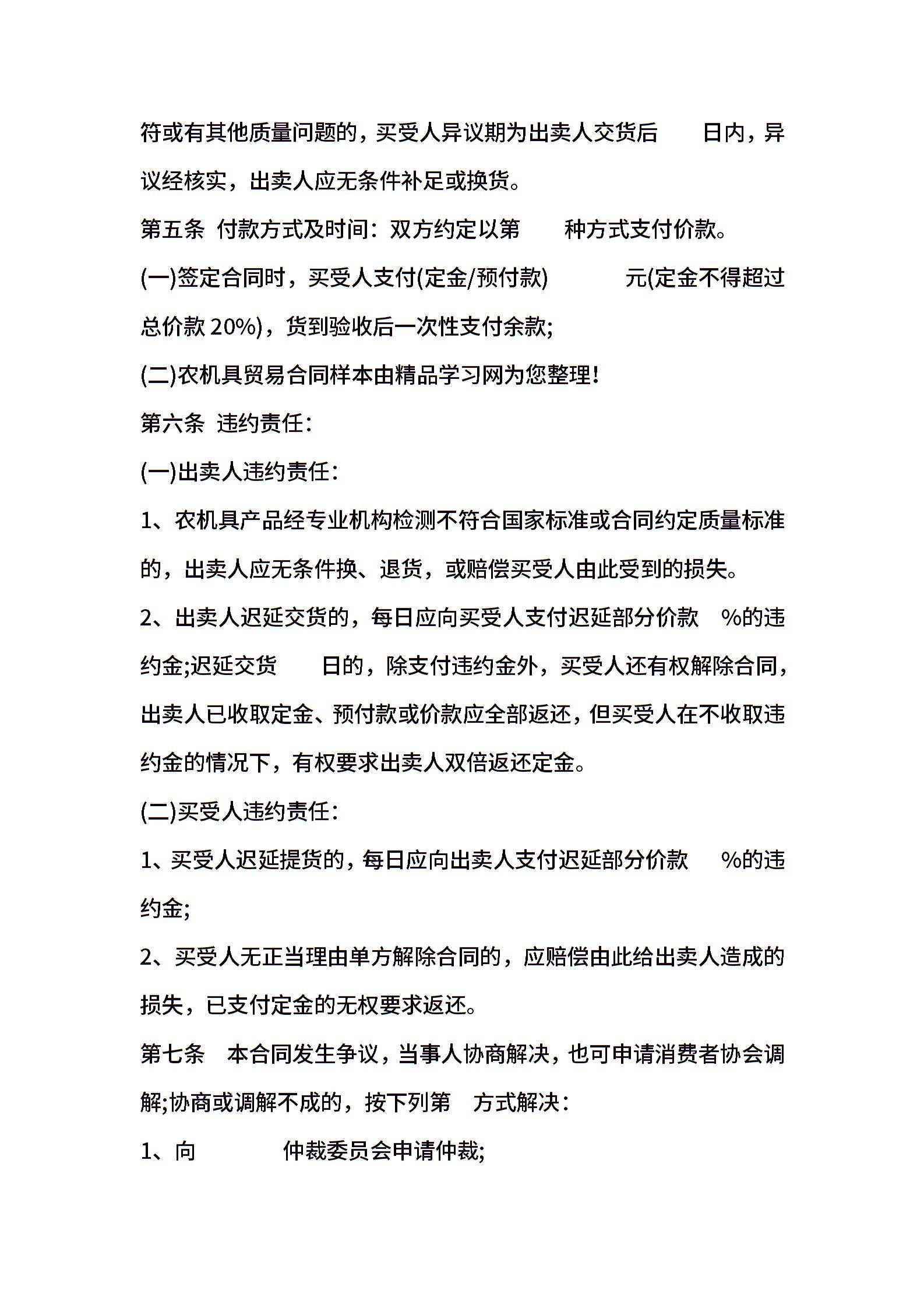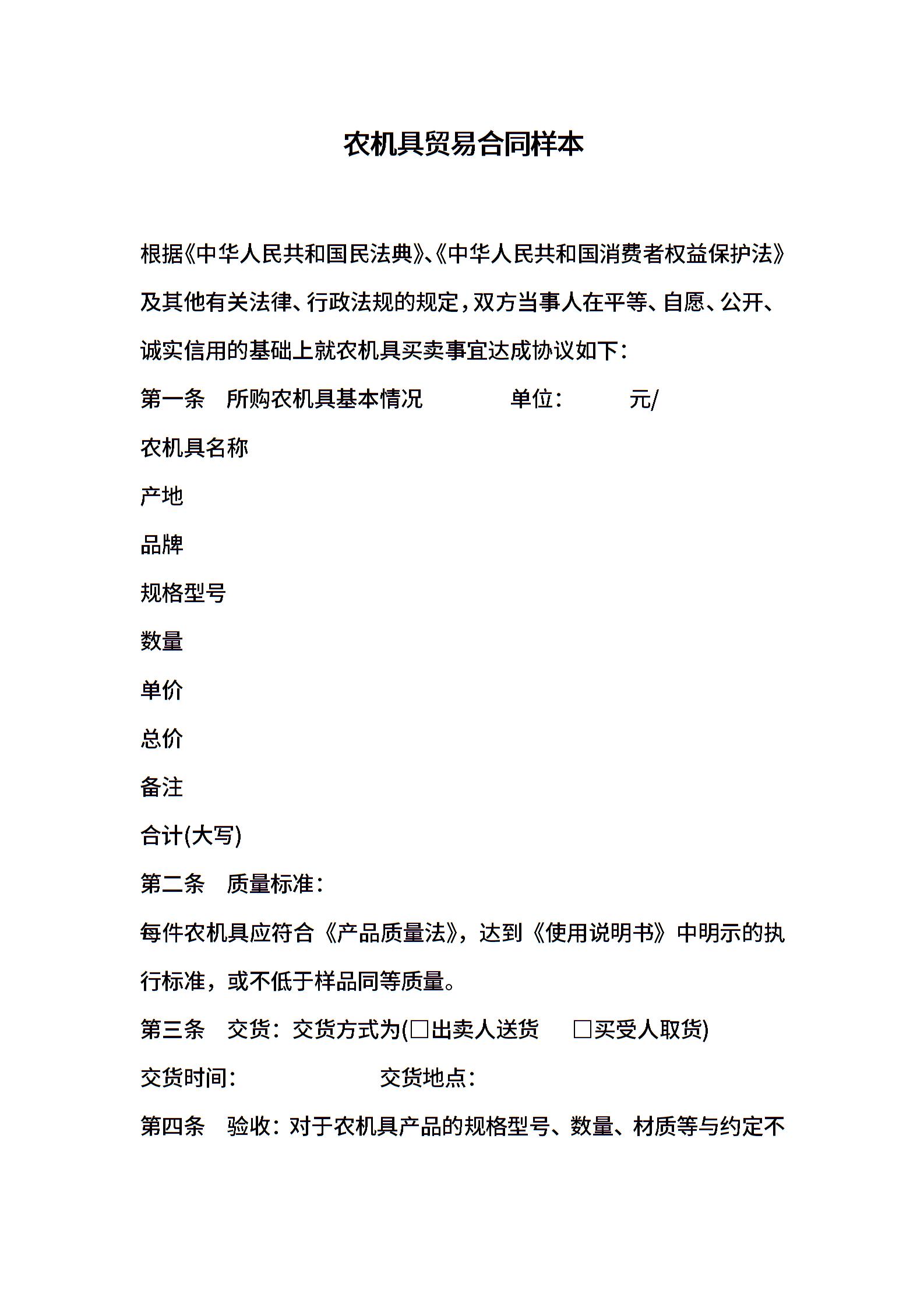 农机具贸易合同样本