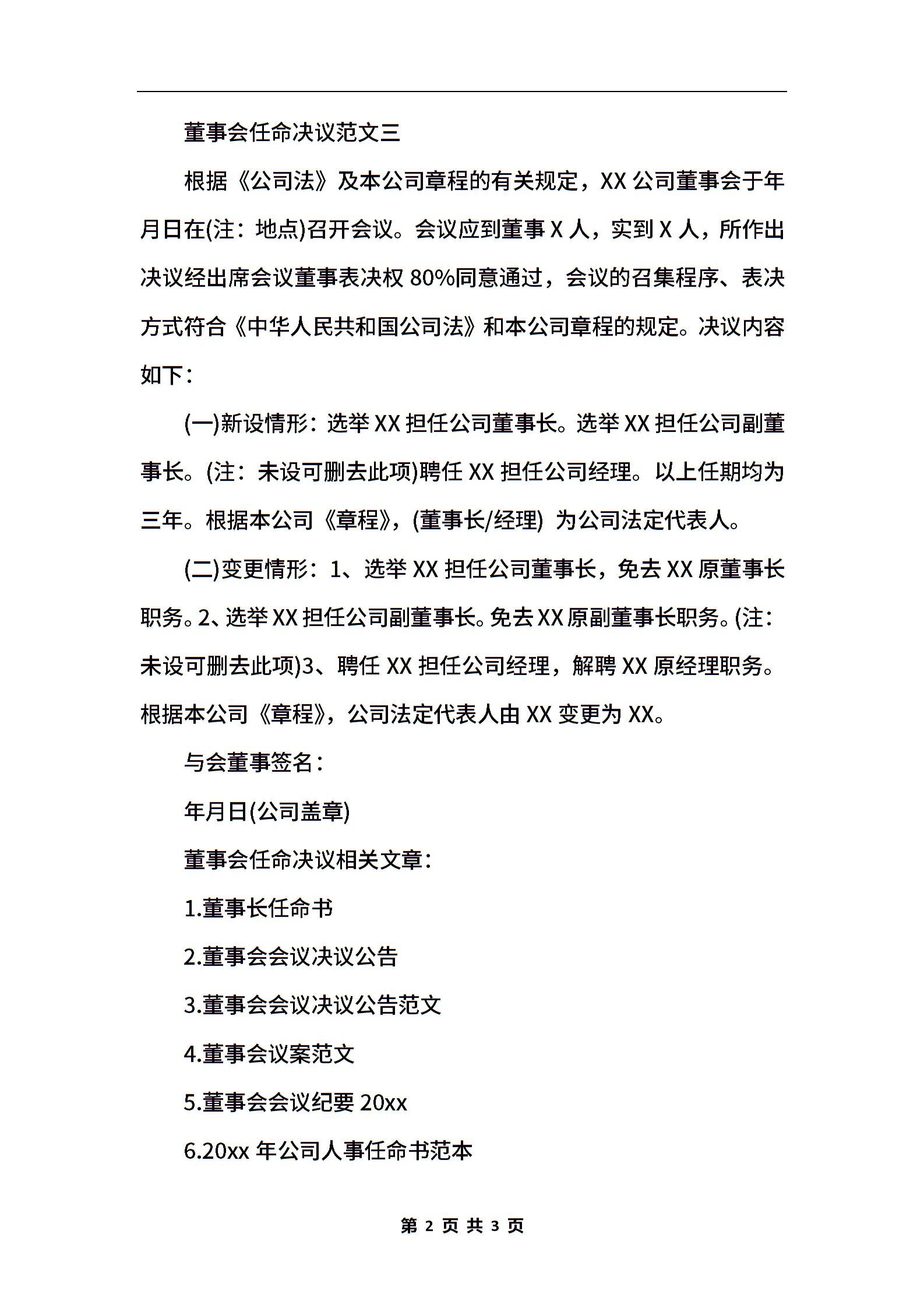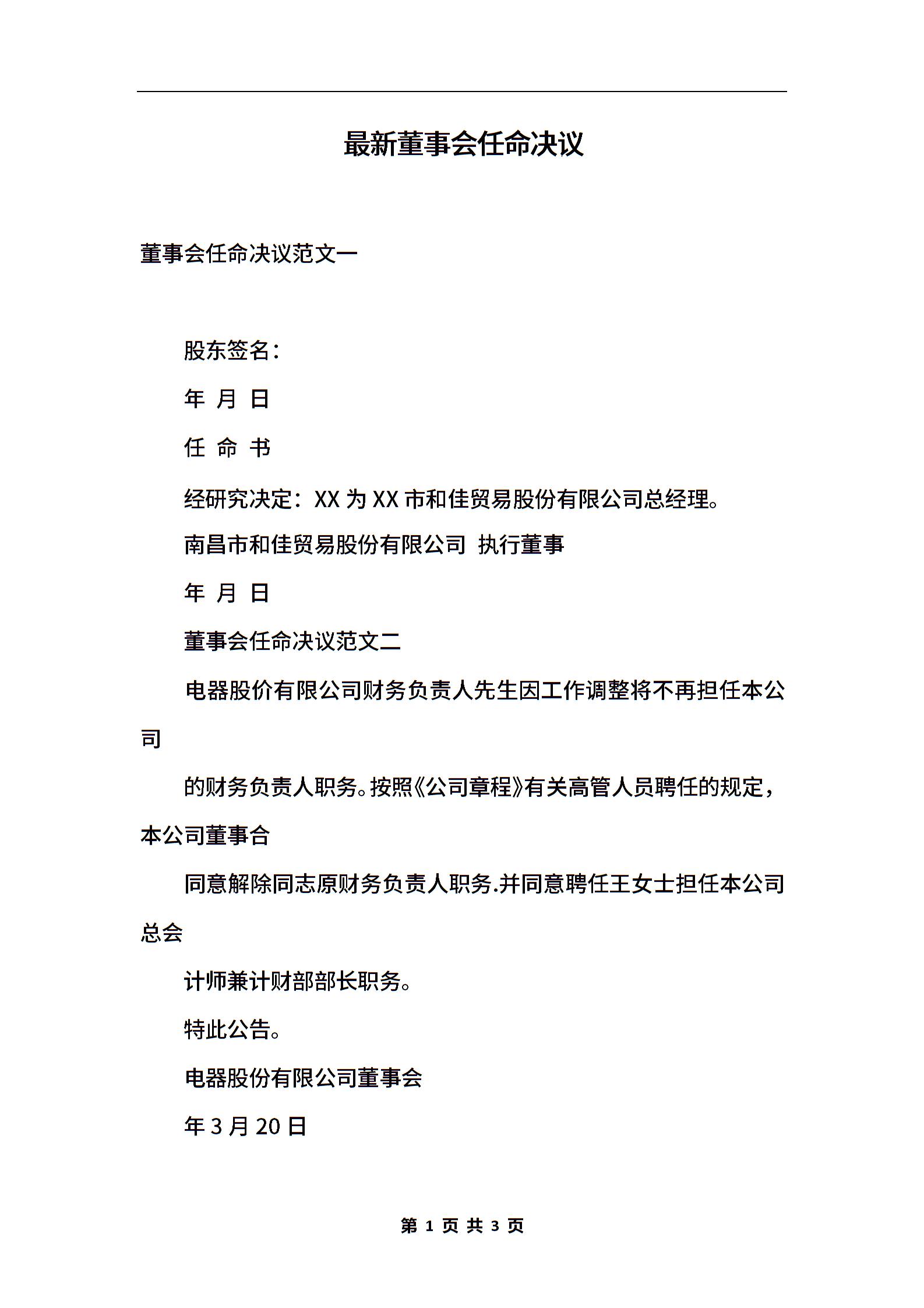 最新董事会任命决议
