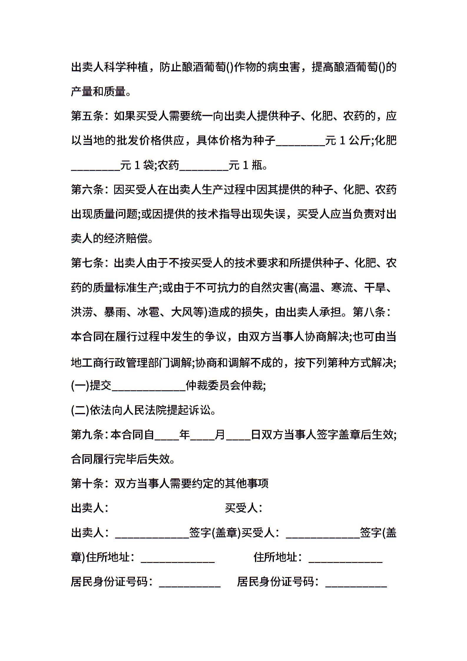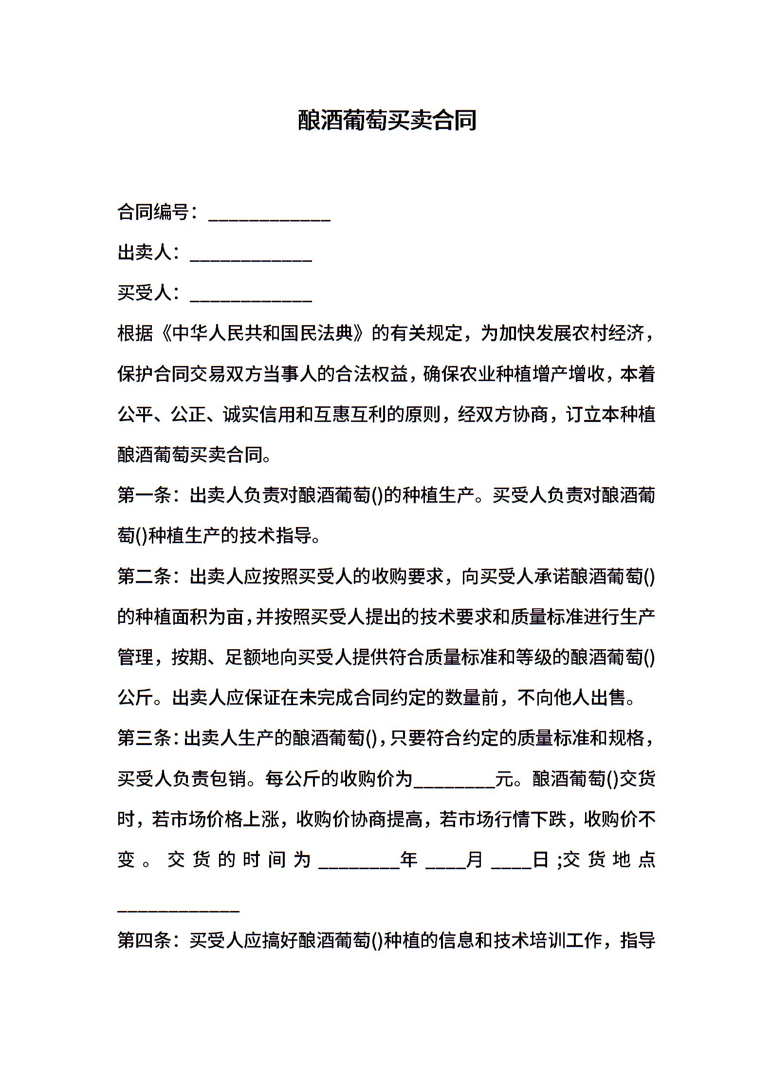酿酒葡萄买卖合同