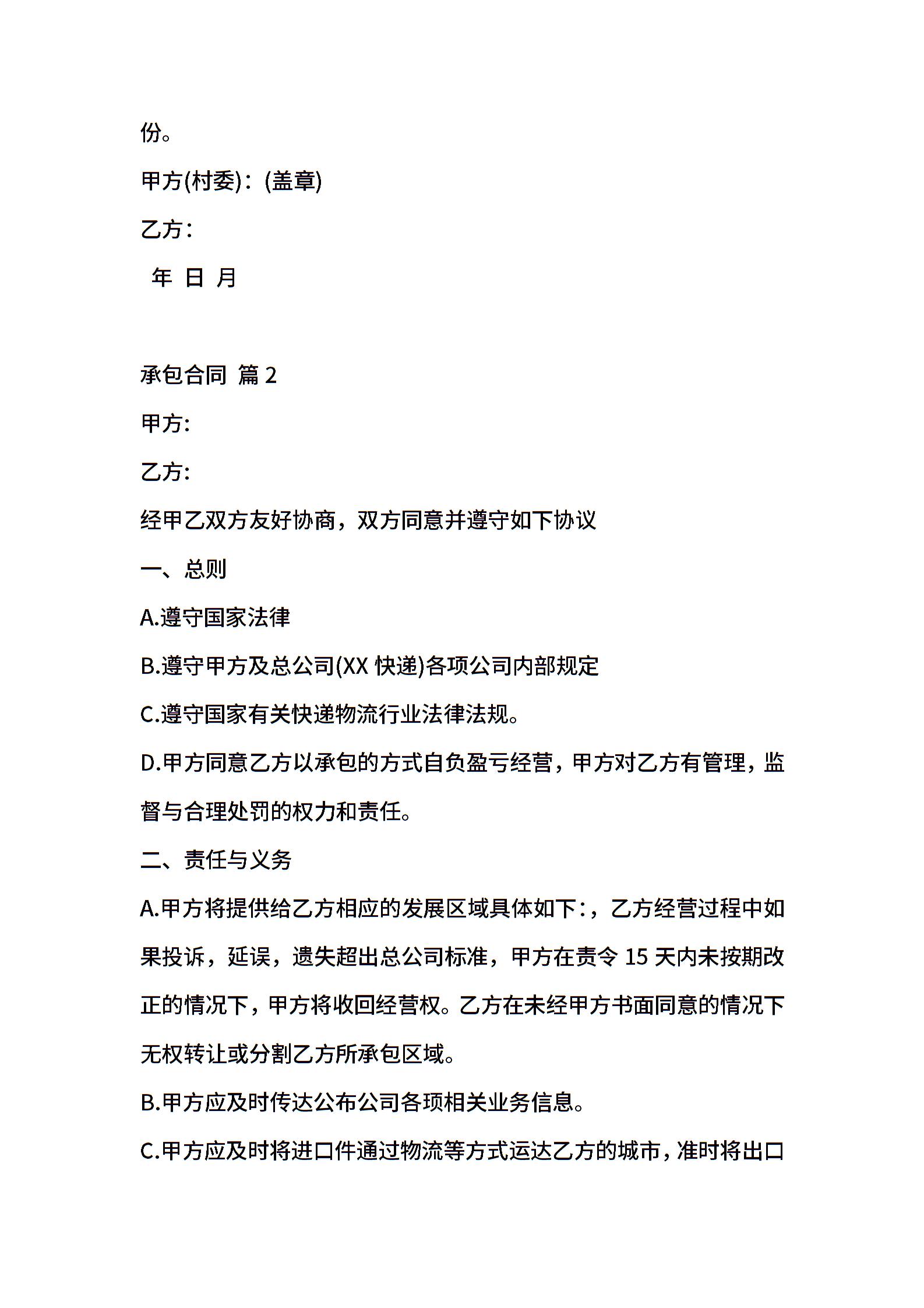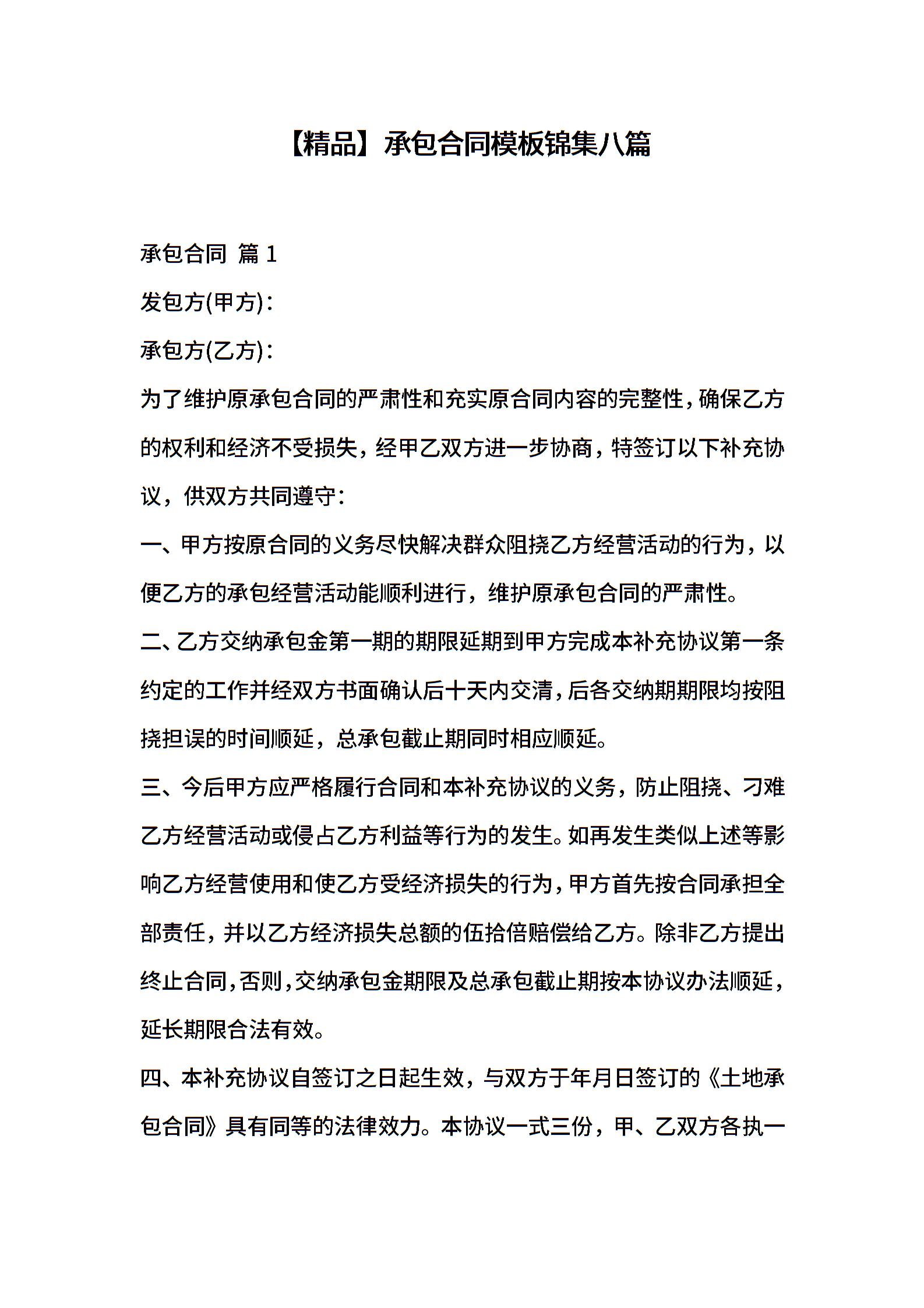承包合同模板锦集八篇