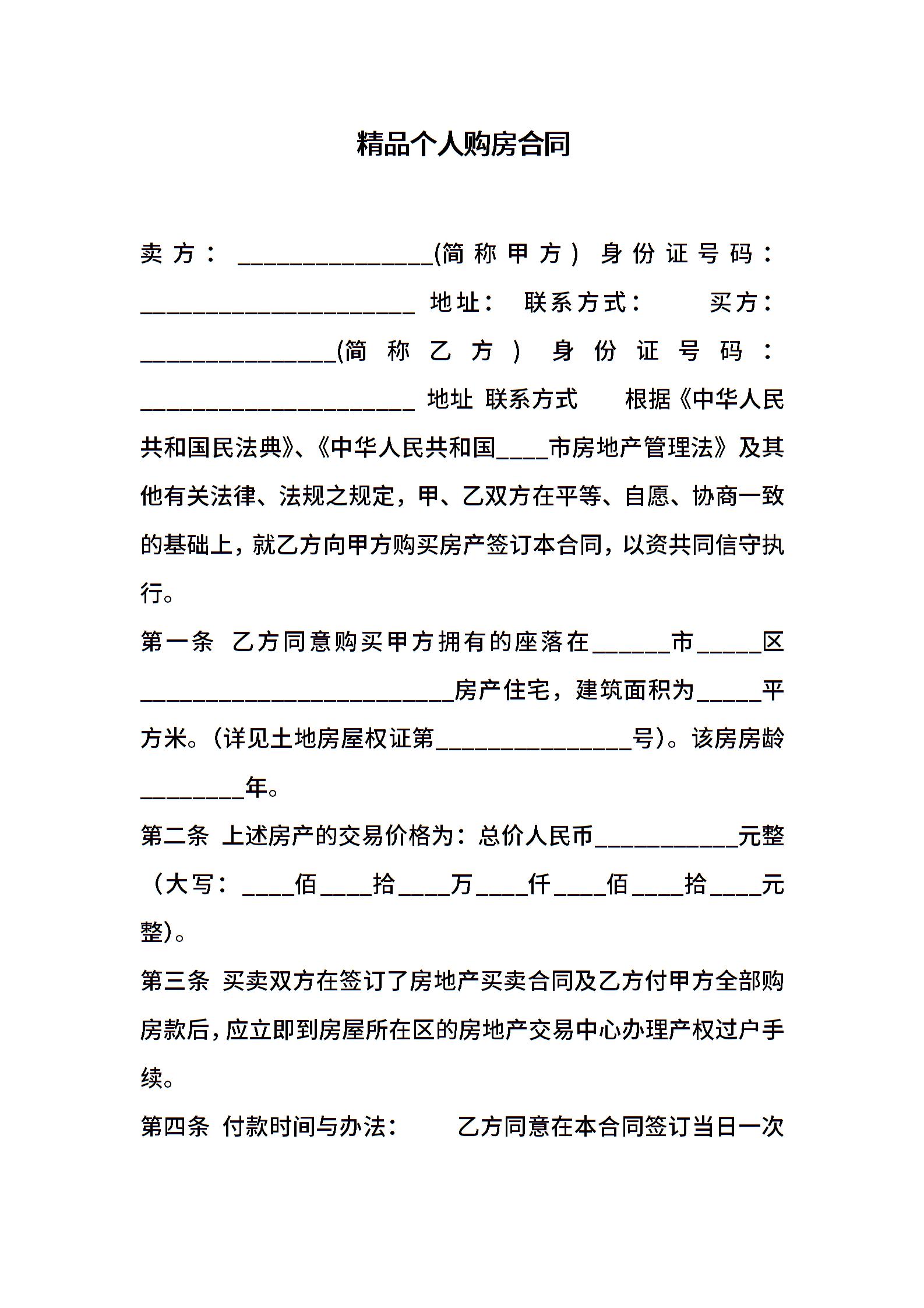 精品个人购房合同