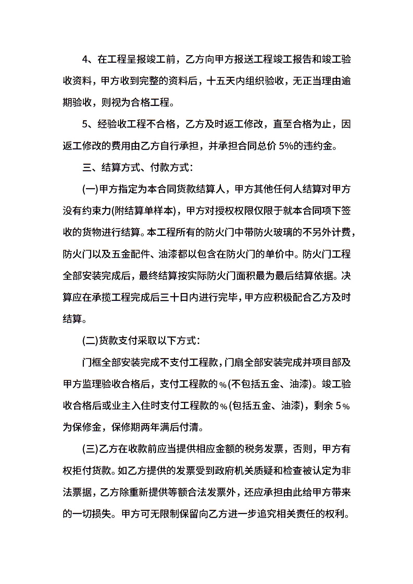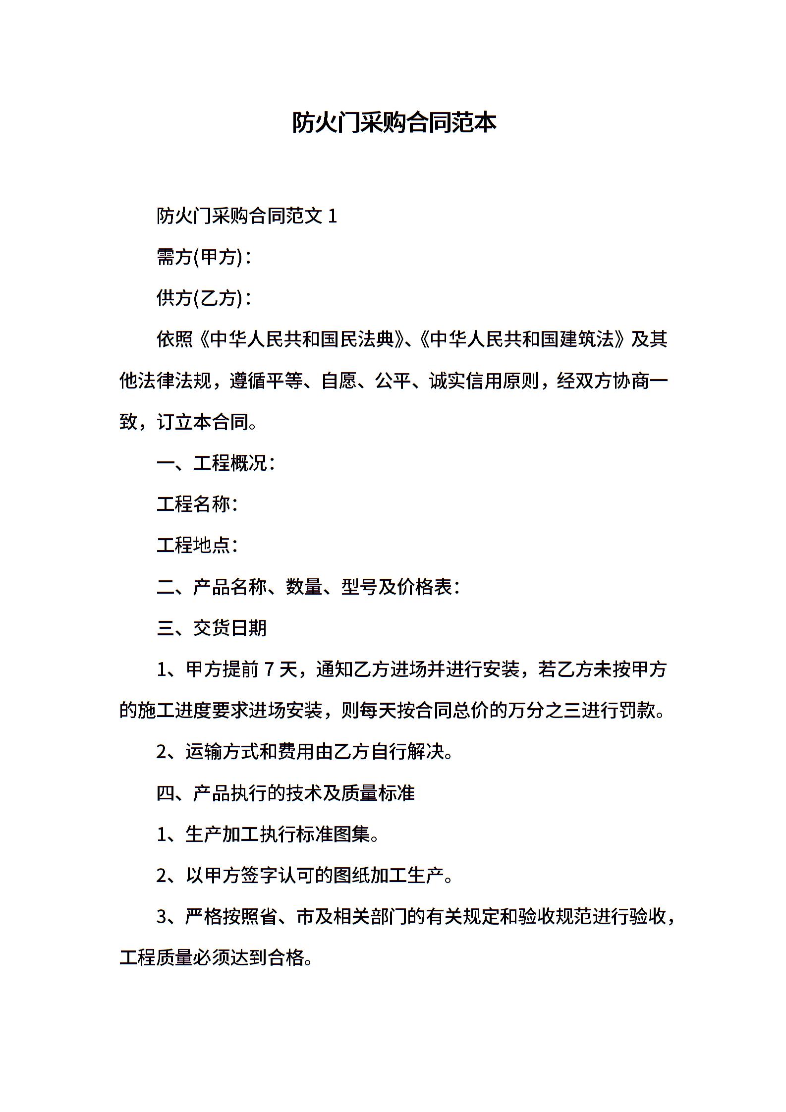 防火门采购合同范本