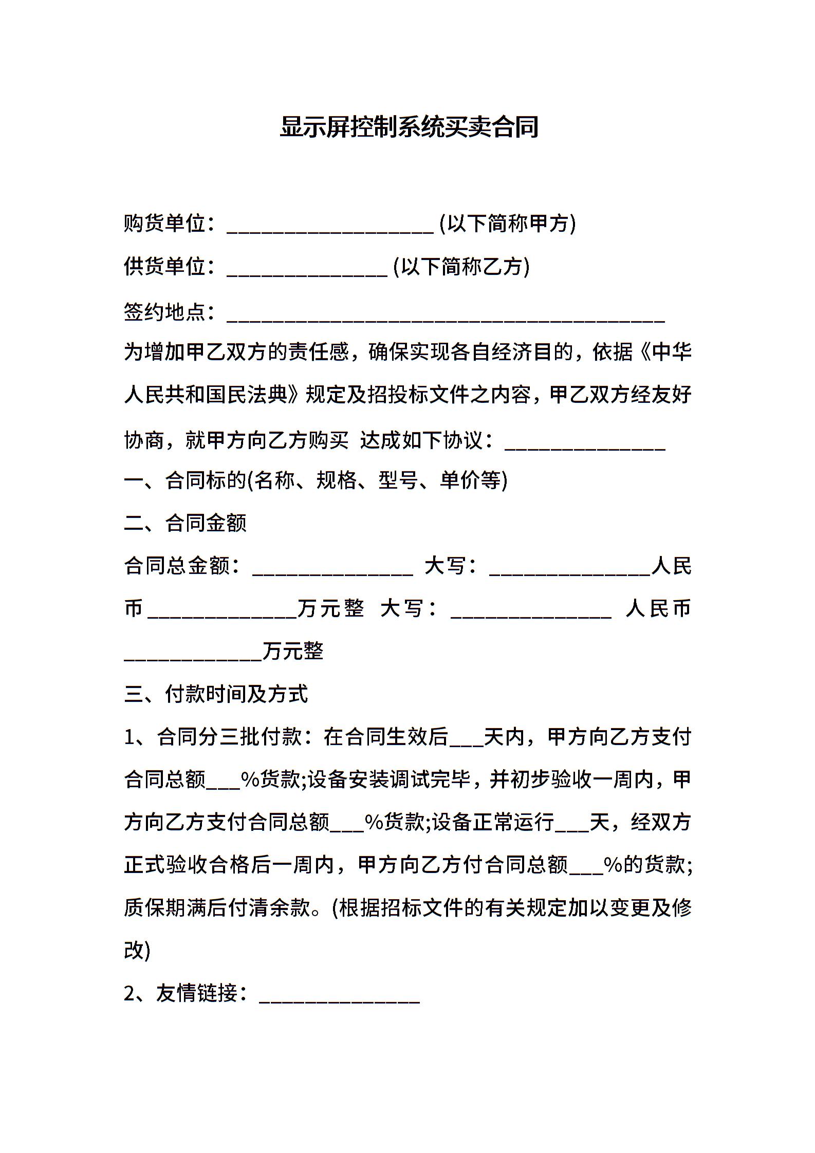显示屏控制系统买卖合同