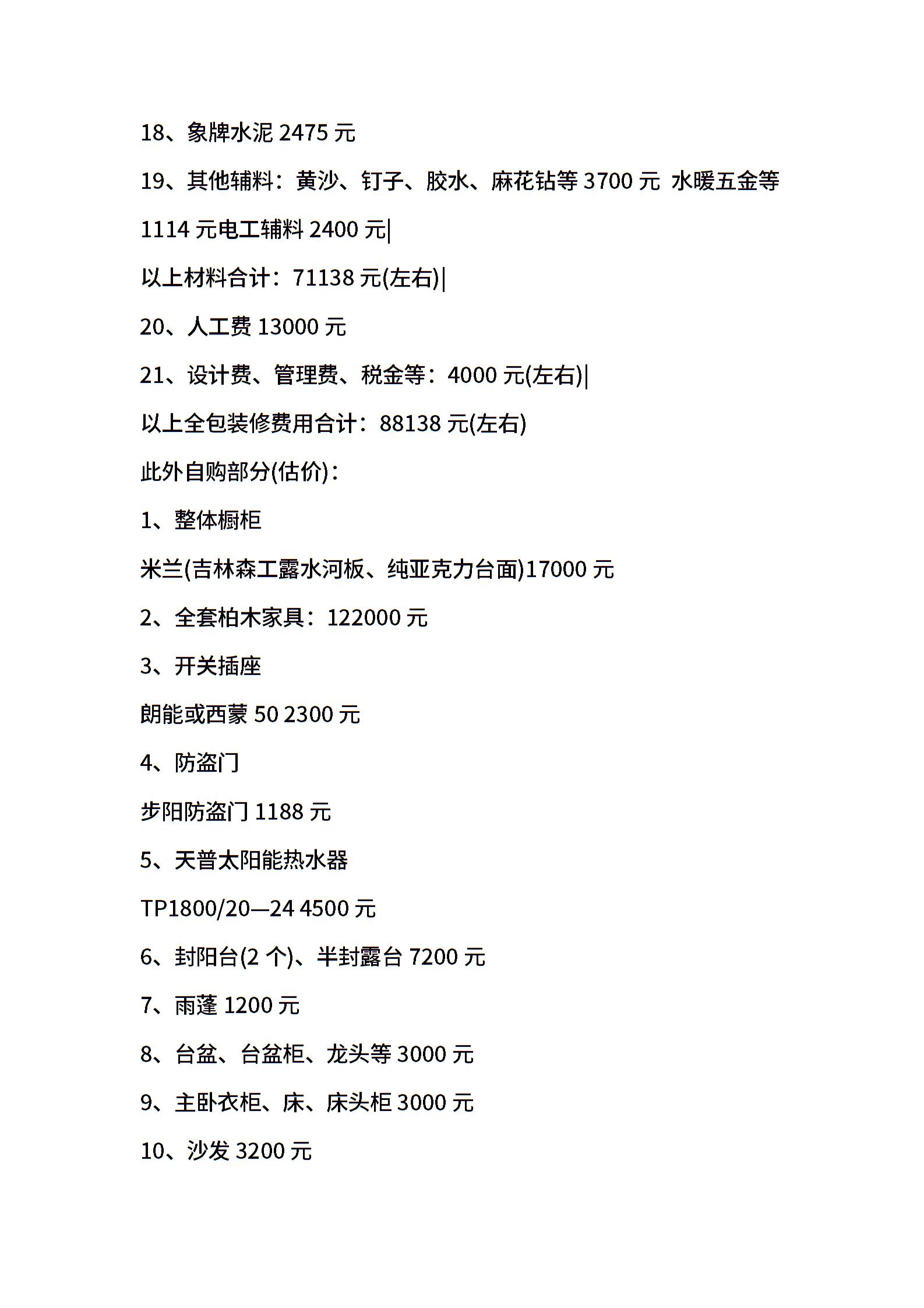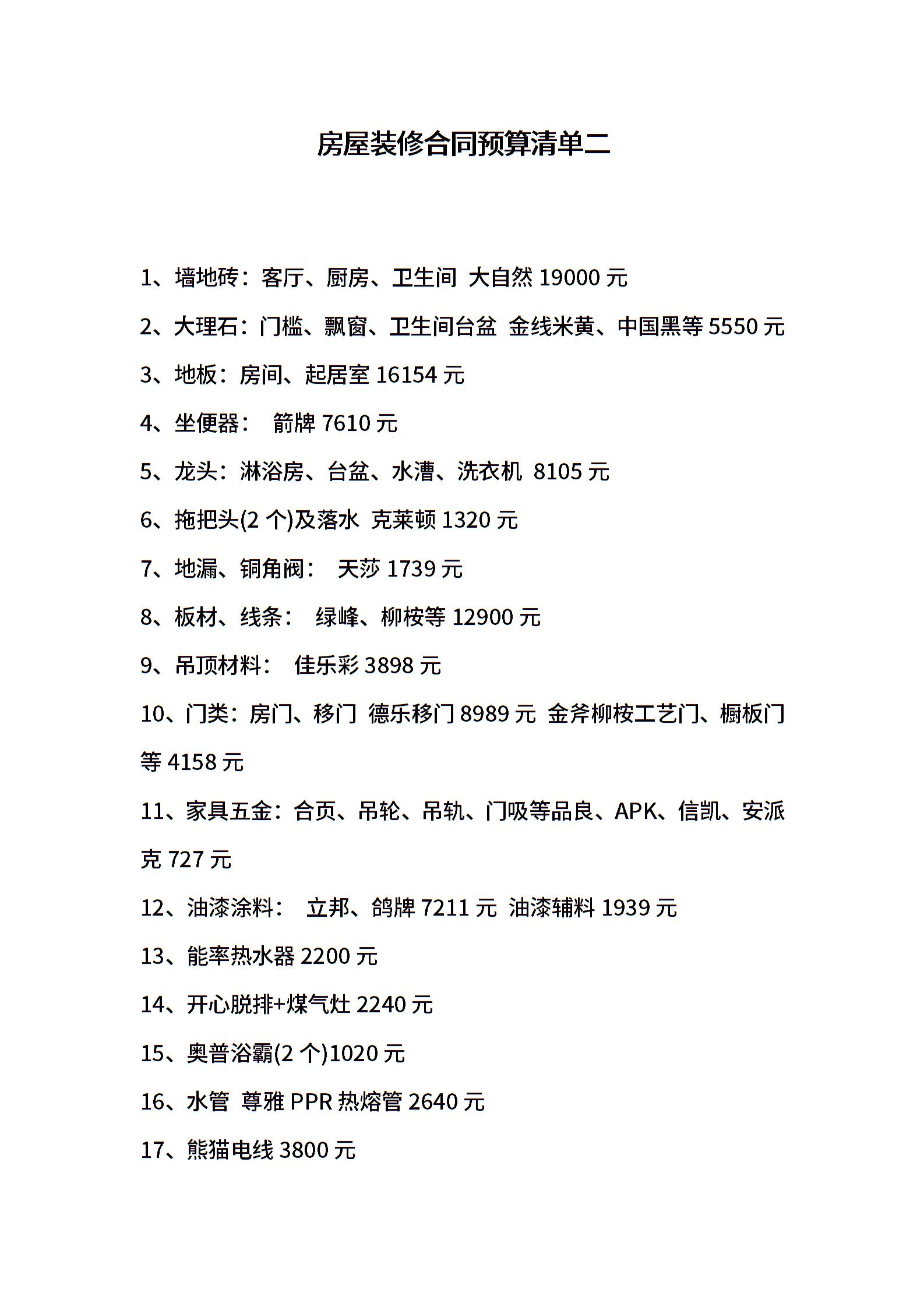 房屋装修合同预算清单二