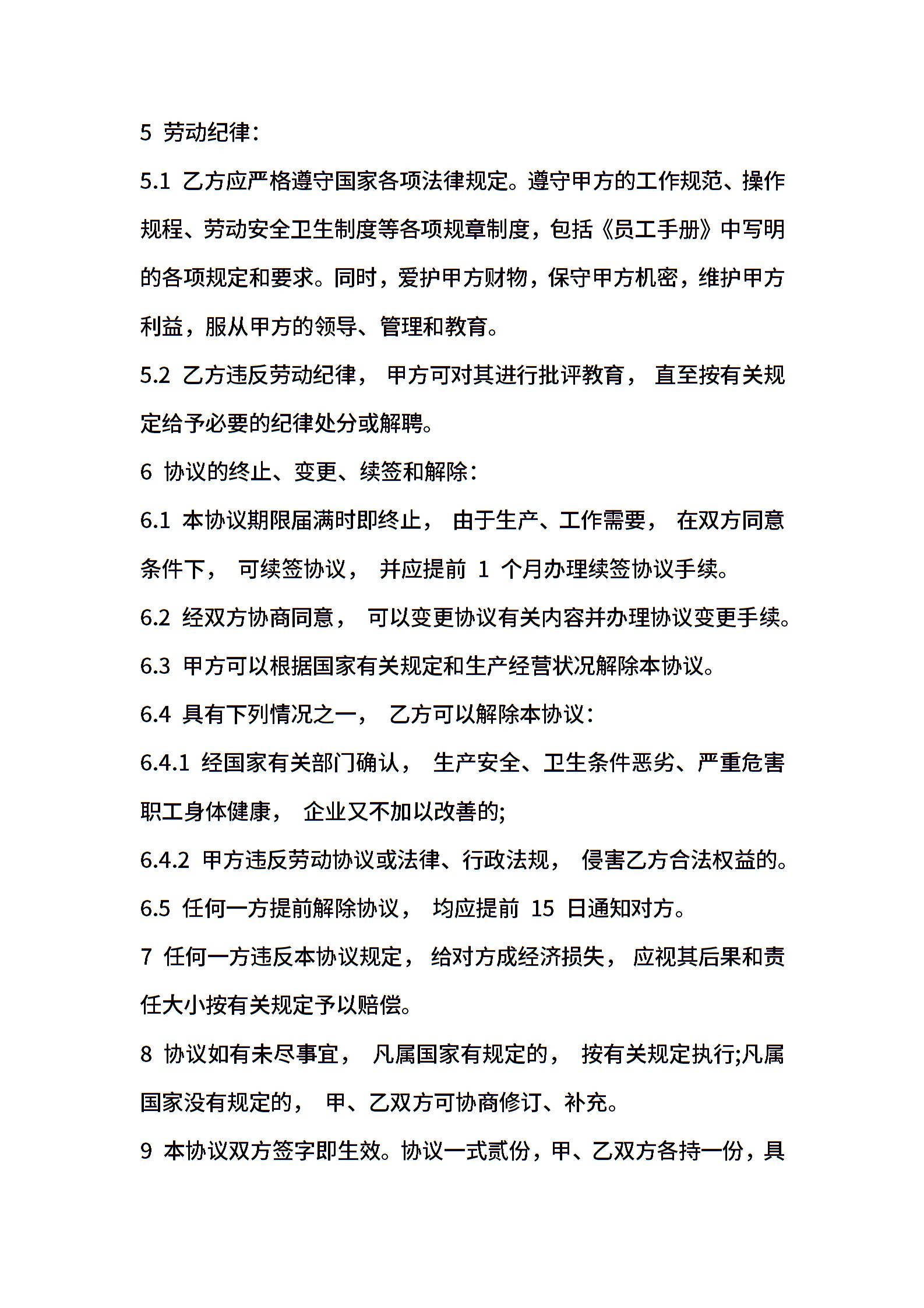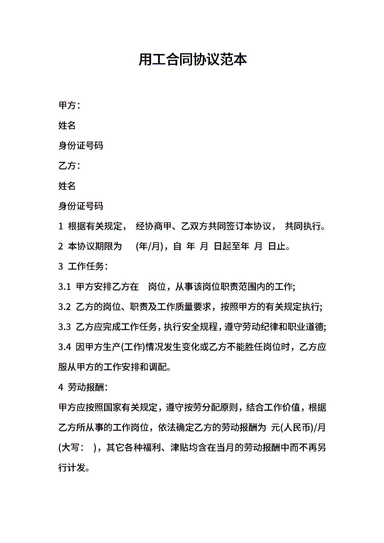 用工合同协议范本