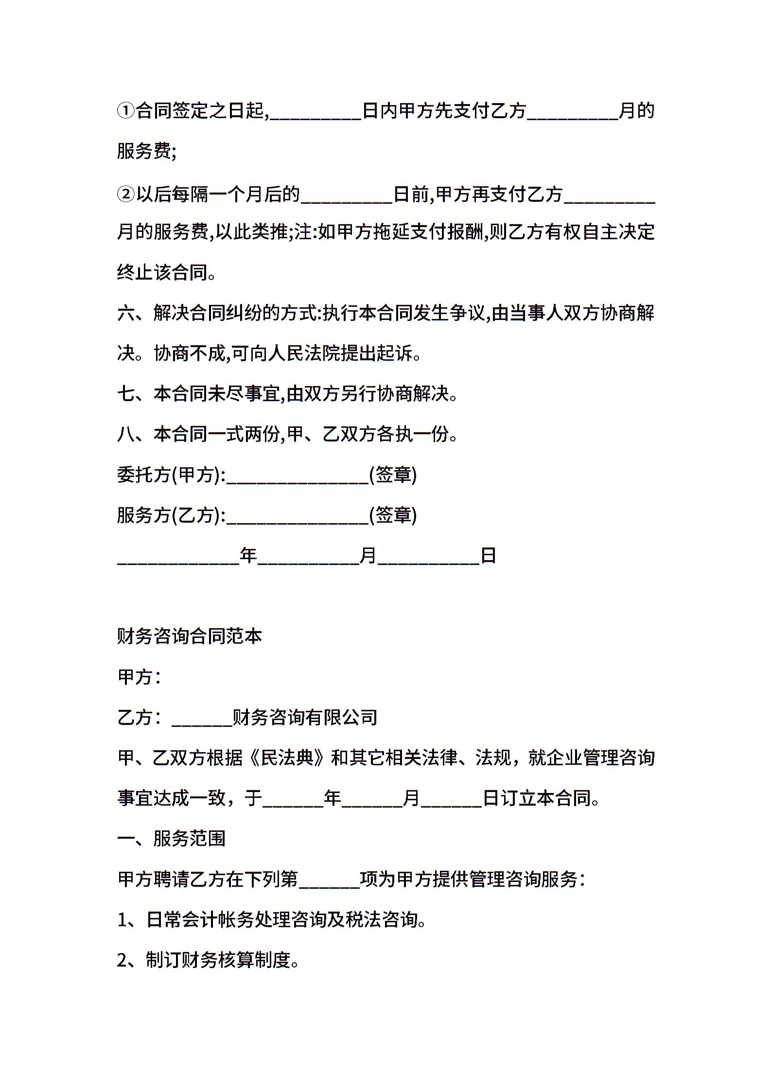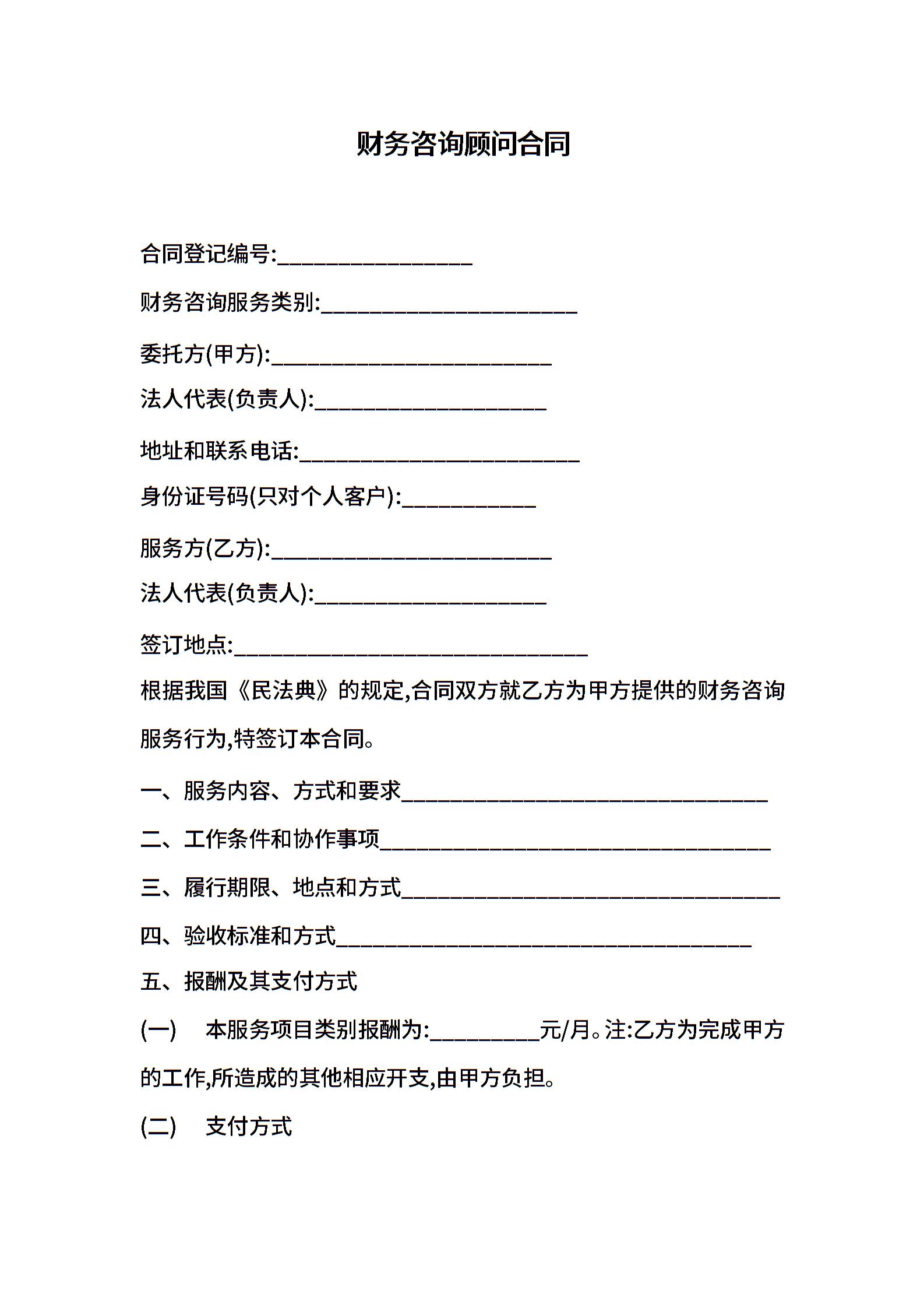 财务咨询顾问合同